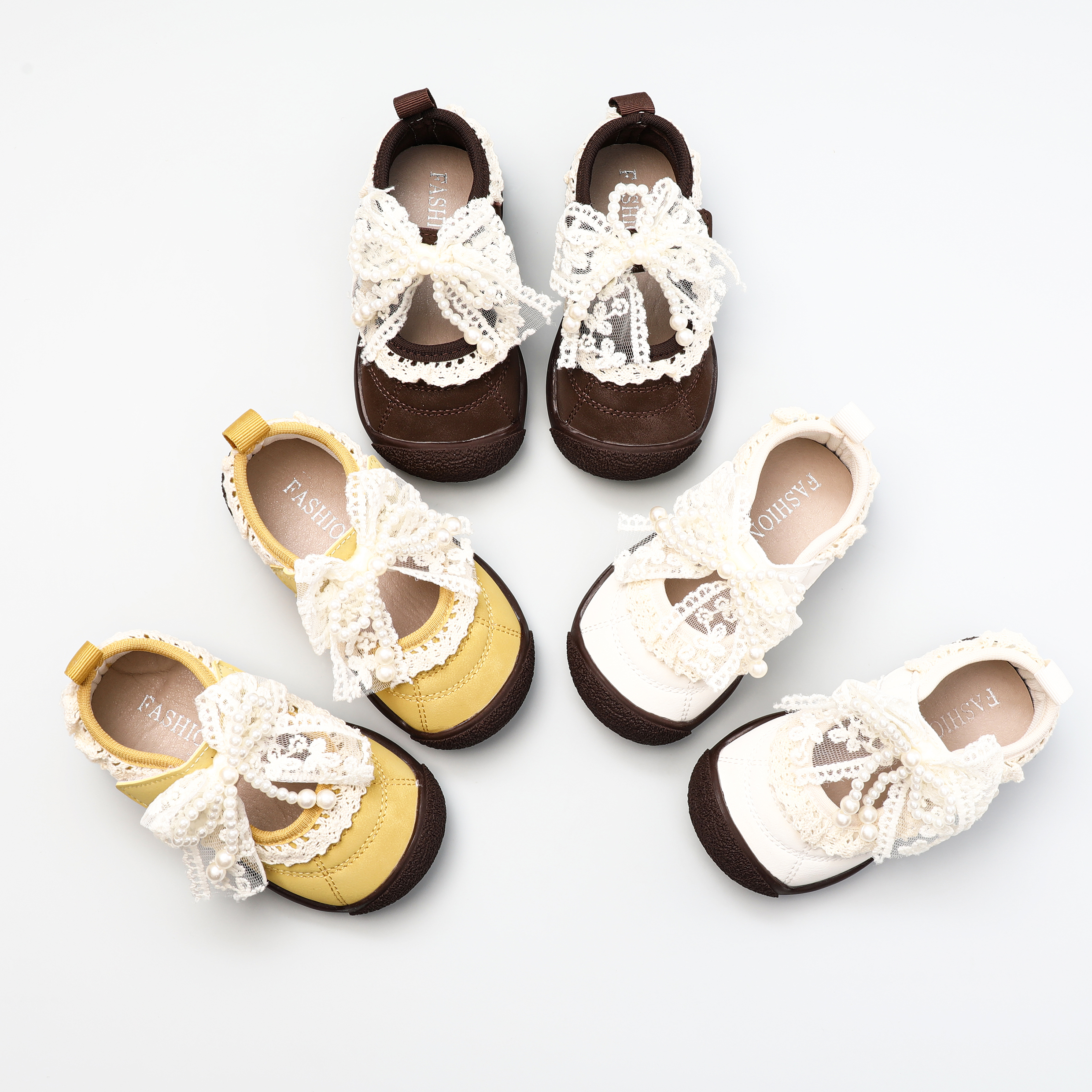 儿童温柔风公主鞋 2025秋季 蝴蝶结软底防滑单鞋 女童蕾丝豆豆鞋 新款