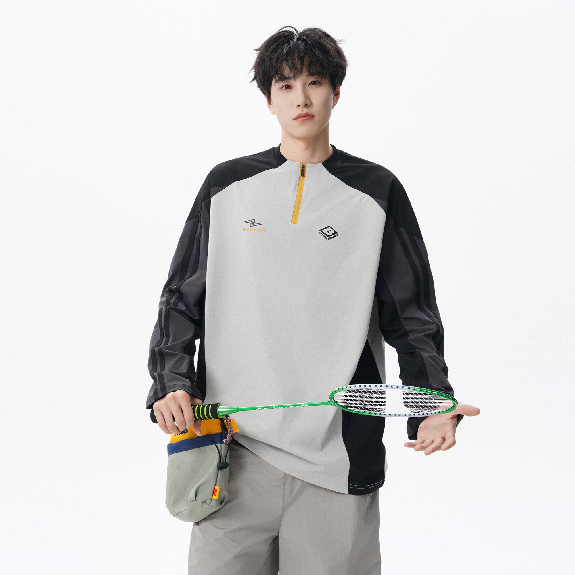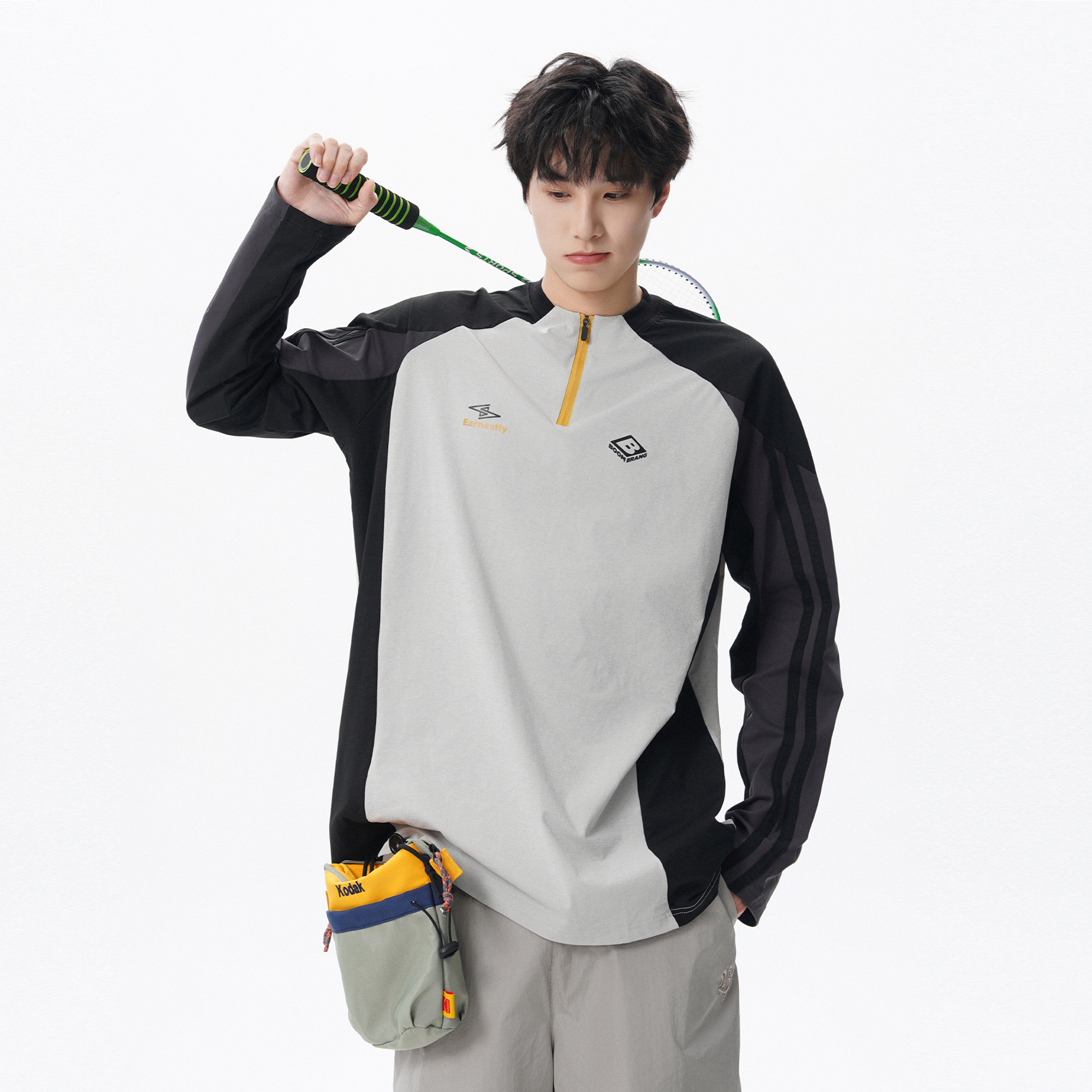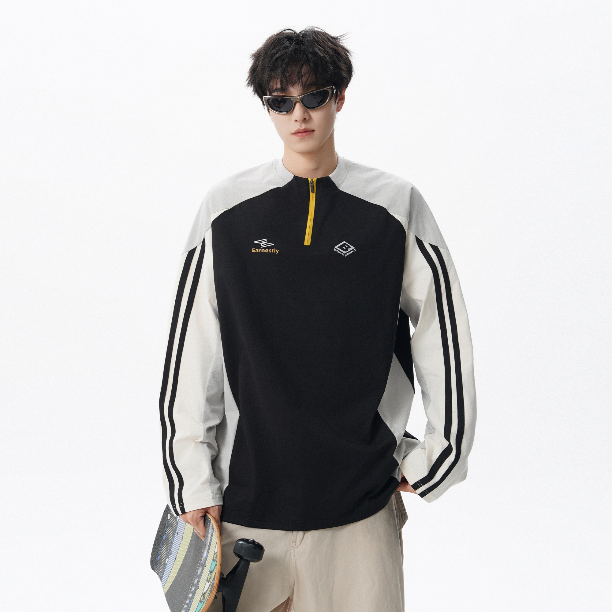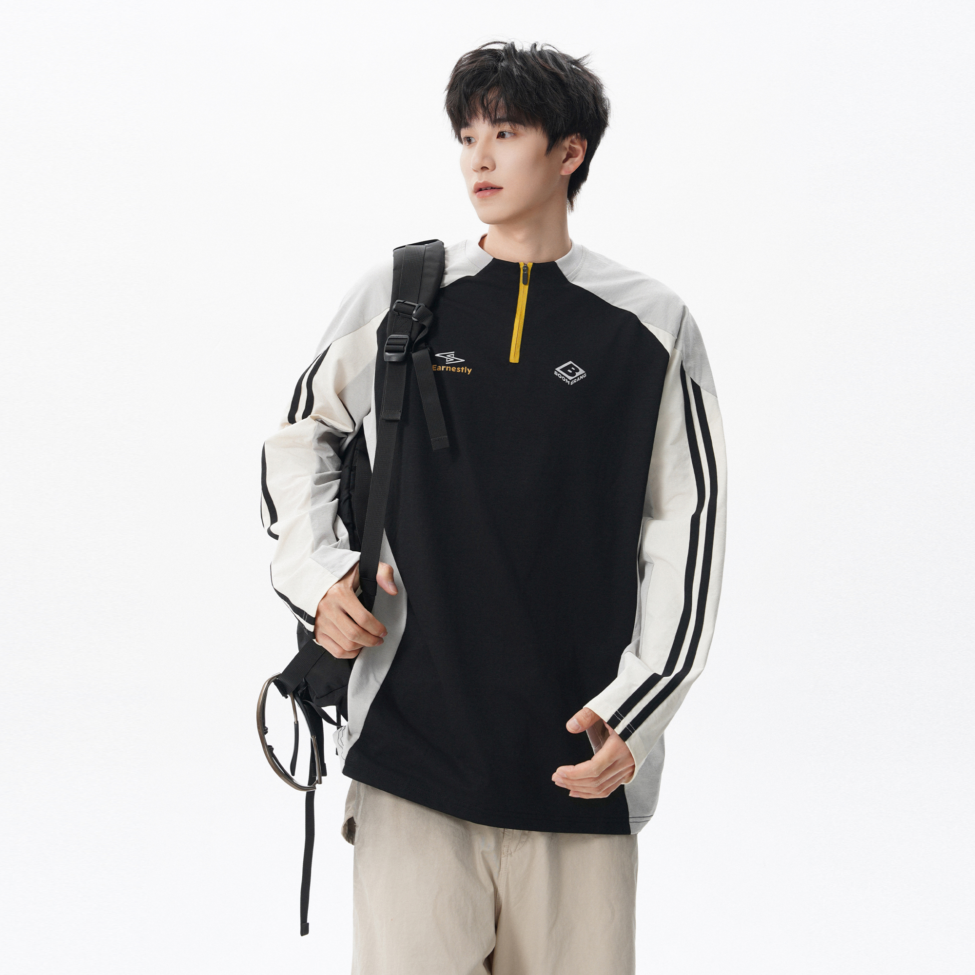 t恤男女潮牌拼接户外骑行运动训练轻薄打底衫 美式 半拉链速干长袖