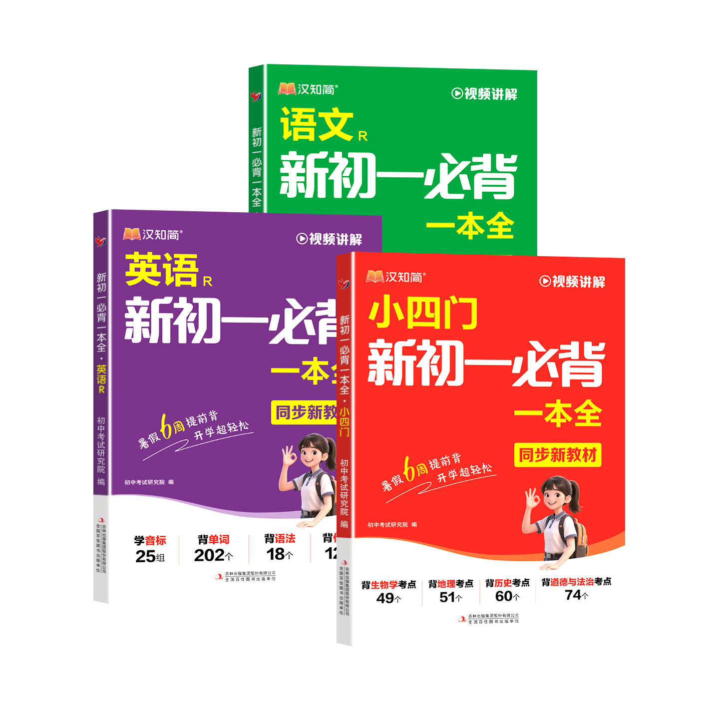 汉知简2025秋季 重点练习中学生七年级 预备新初一必背语文英语小四门暑假作业考点一本全通政治历史地理生物小四门必背知识点人教版