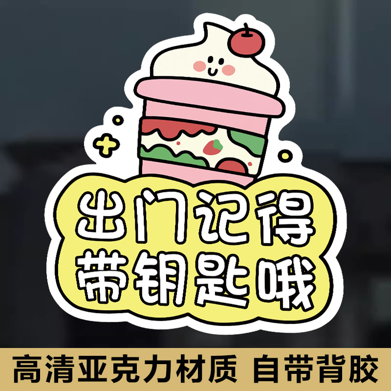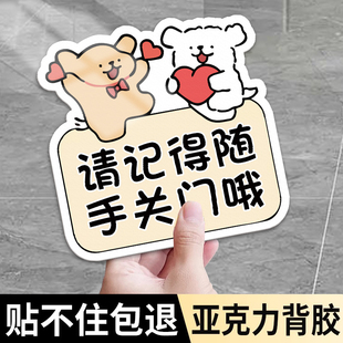 出门记得带钥匙提示贴纸进出请随手关门提示牌亚克力出入关门墙贴定制提醒牌磁吸门口别忘带钥匙包标识牌卡通