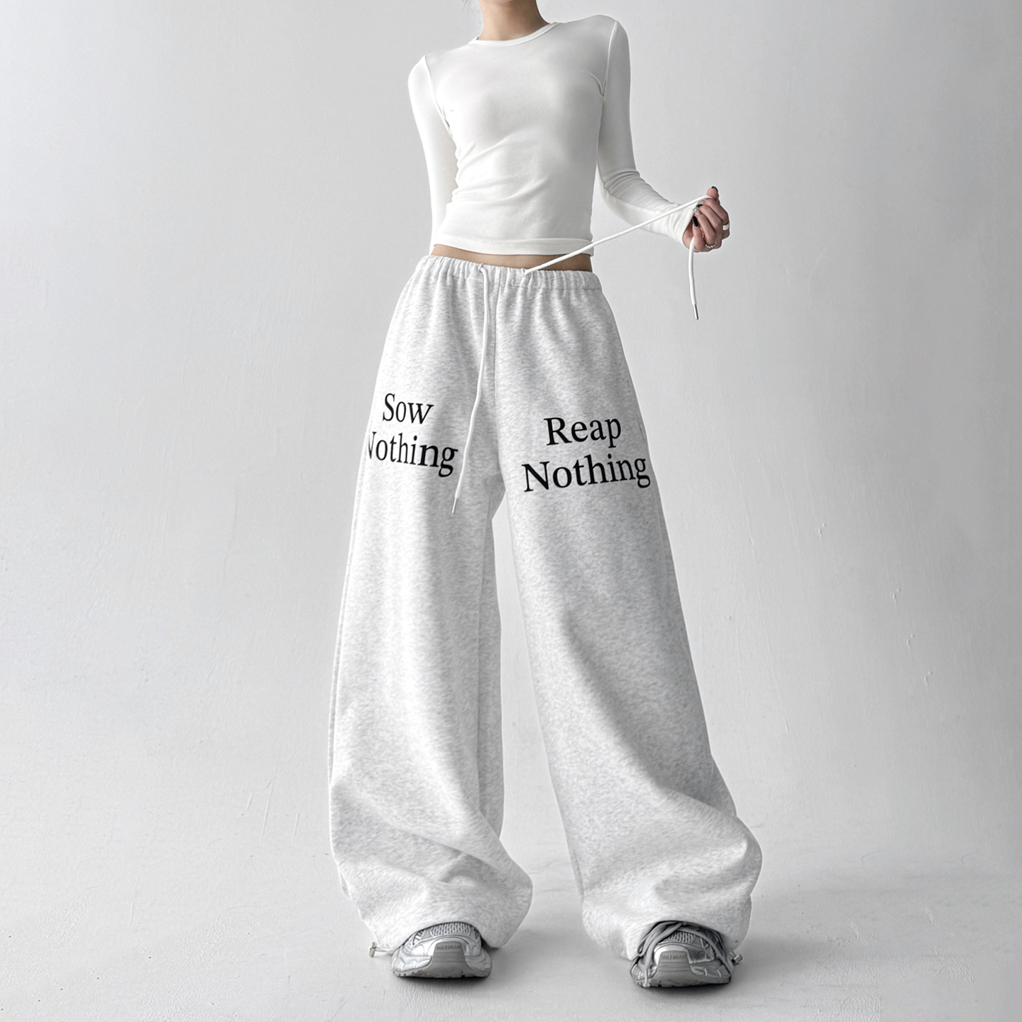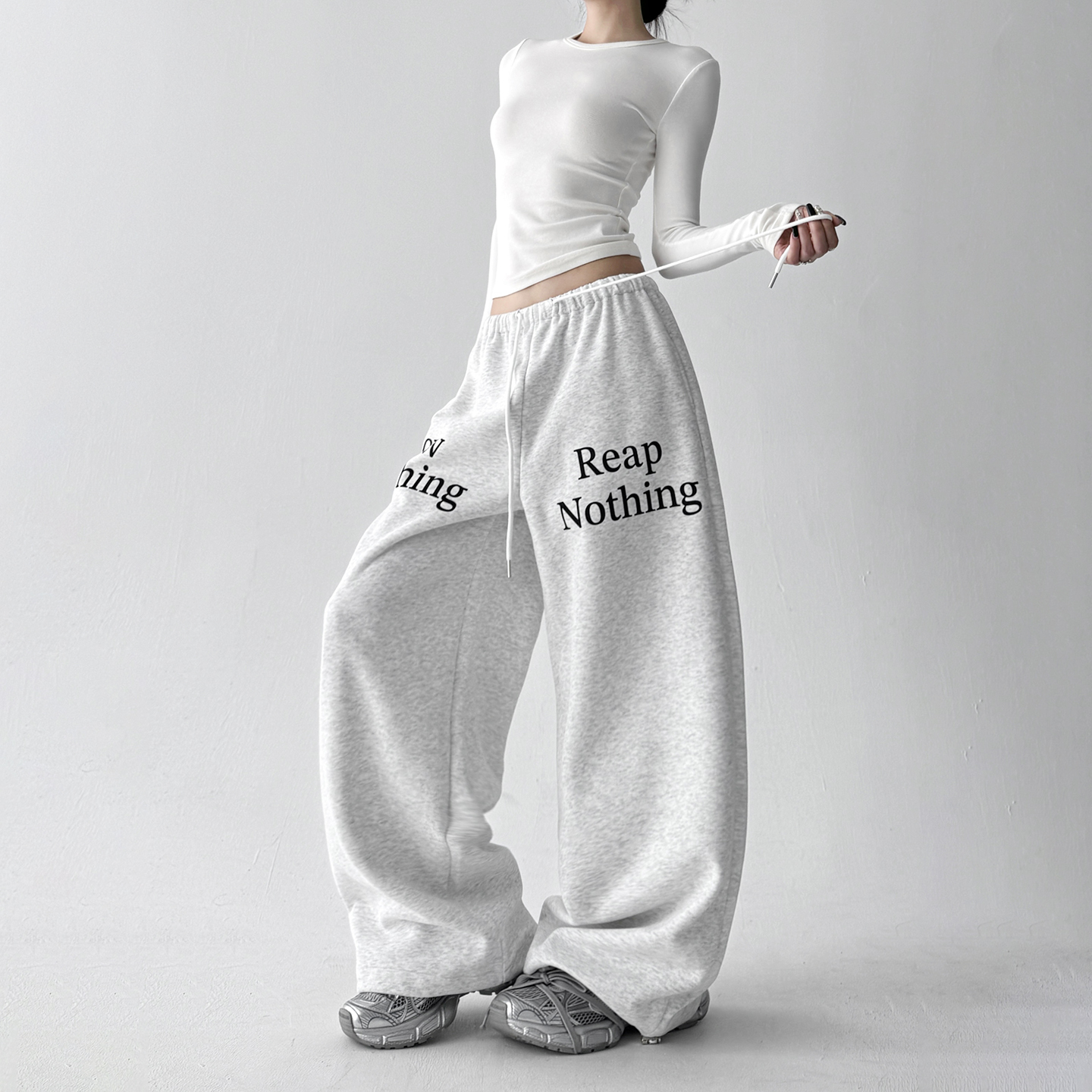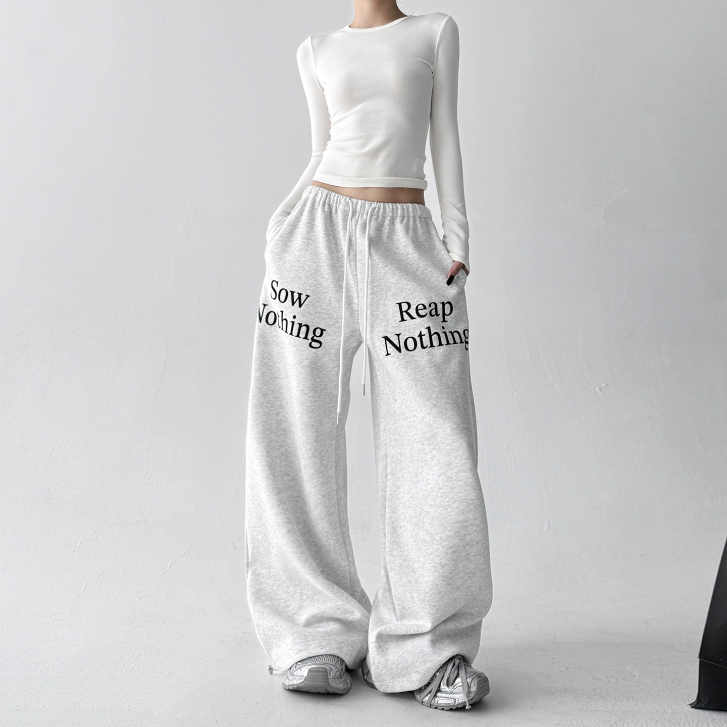 女宽松显瘦直筒松紧腰加厚阔腿休闲裤 运动卫裤 潮 复古2025新款 美式