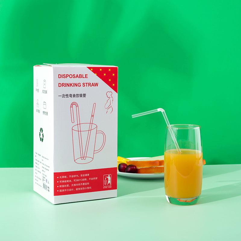 一次性吸管可弯曲塑料透明独立包装 儿童饮料食品级200支喝水卧床