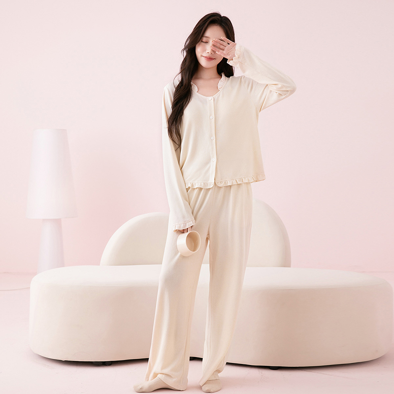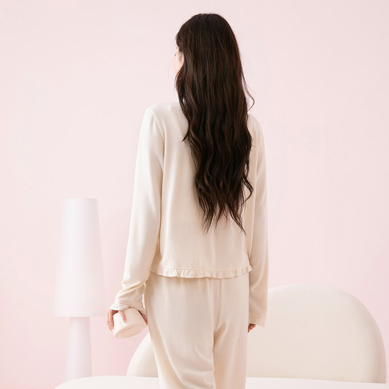 长袖 带胸垫吊带背心开衫 外套睡衣三件套纯色女家居服 新款 芬腾秋季