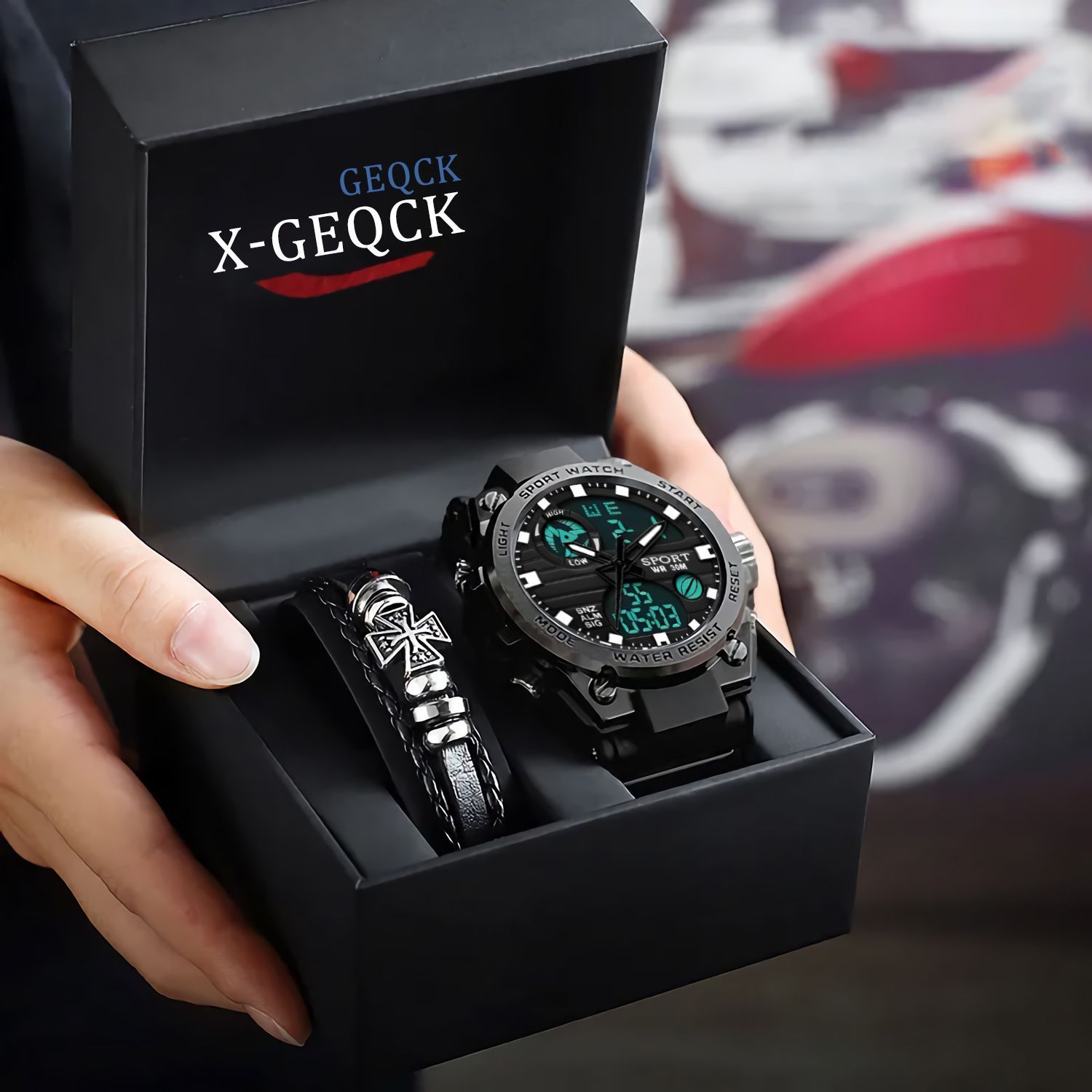 2025新款 防水学生多功能战术运动户外夜光大表盘双显 电子手表男款