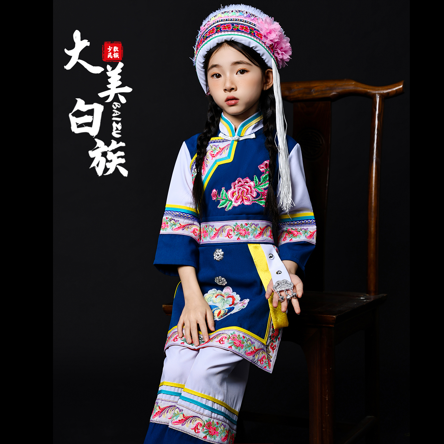 儿童演出服舞台服装 云南少数民族服装 大理白族服饰白族女舞蹈服装