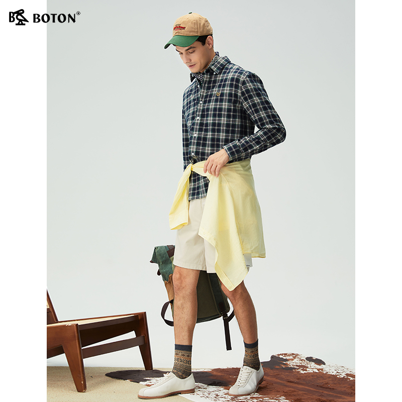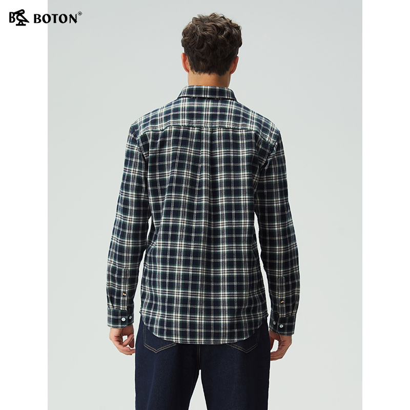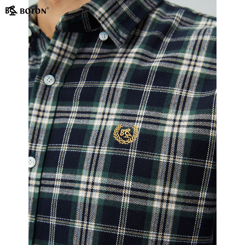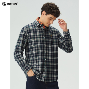 新款 修身 磨毛格子长袖 男士 波顿秋季 衬衫 休闲衬衣百搭 抗菌防臭