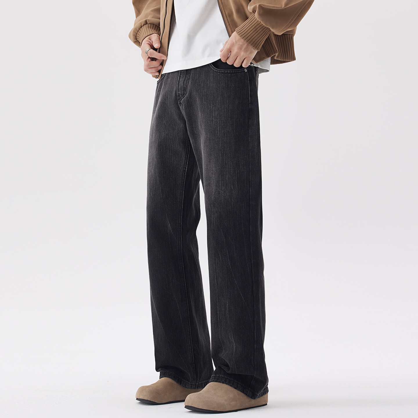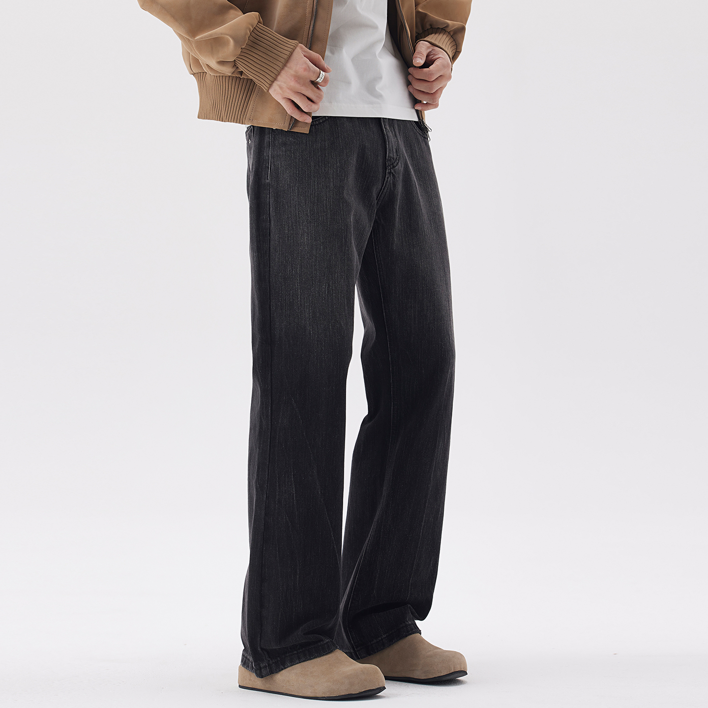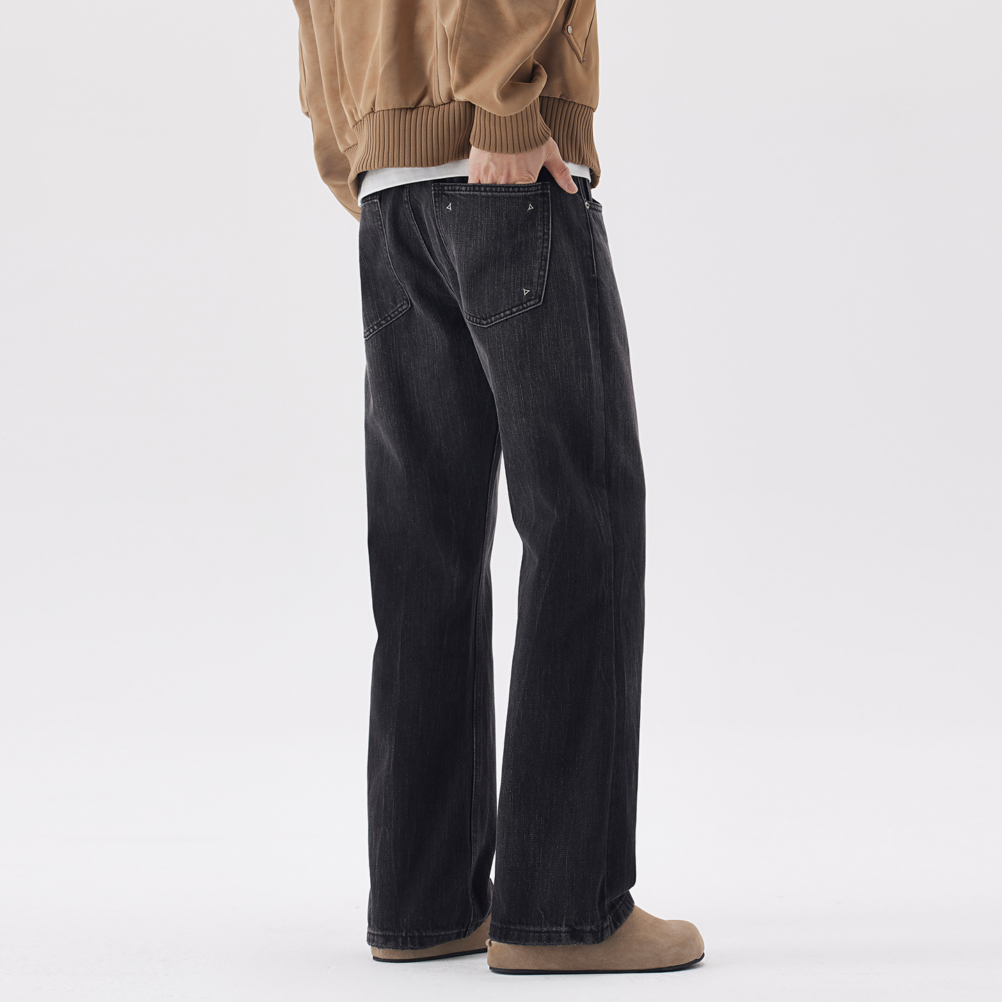 宽松直筒扎花水洗长裤 Kuvine秋季 男款 复古cleanfit微喇牛仔裤 美式