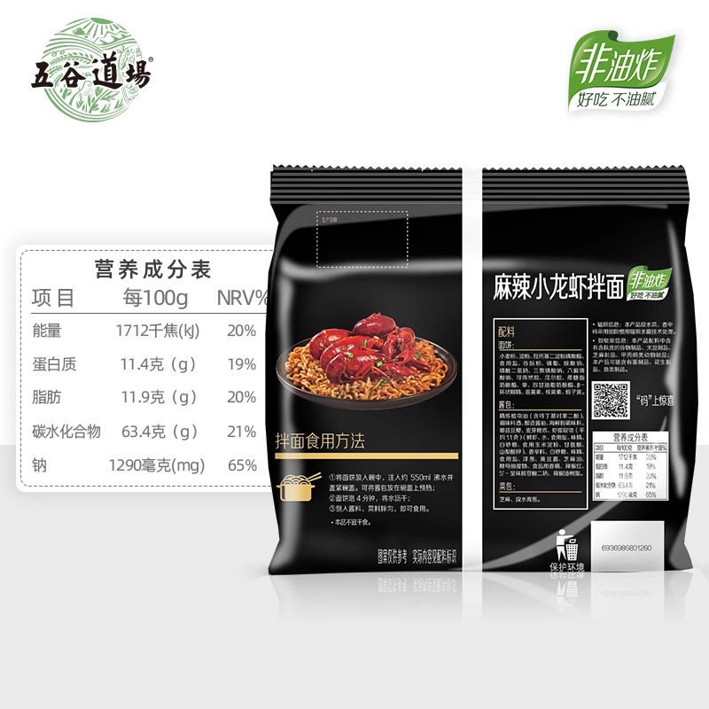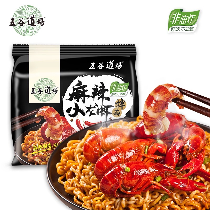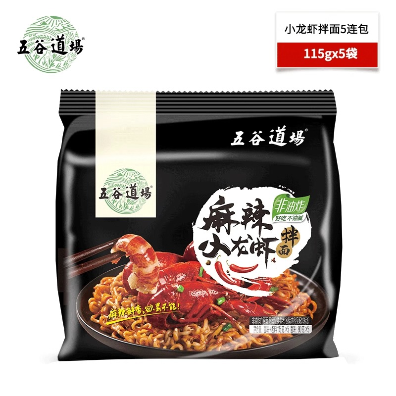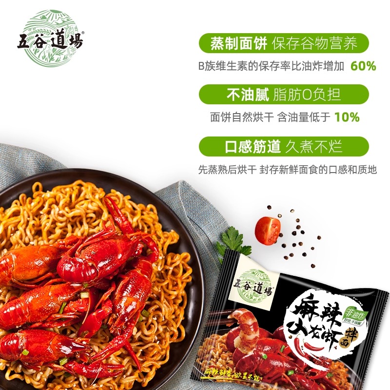 五谷道场非油炸方便面麻辣小龙虾拌面5包速食袋装 夜宵泡面番茄