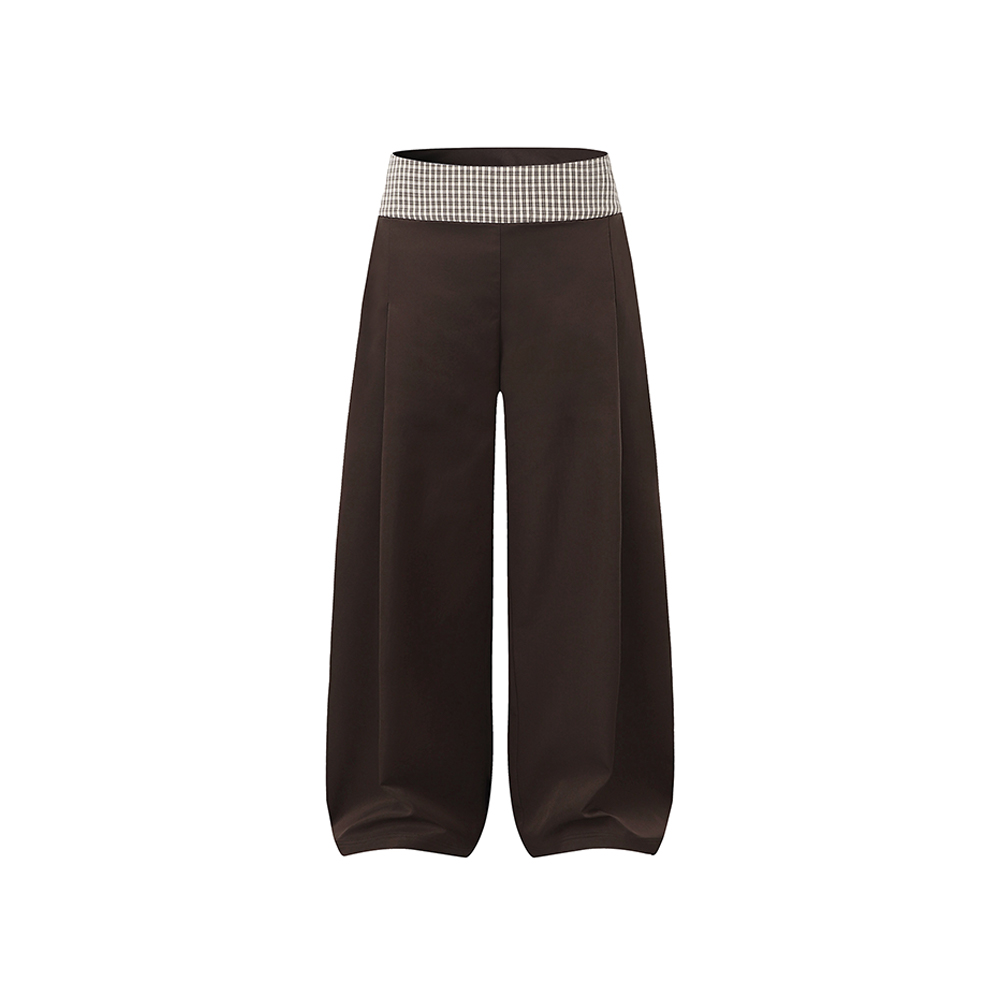 镰刀香蕉裤 DIMC女装 慵懒松弛感西裤 秋款 格纹拼接内褶阔腿高腰裤