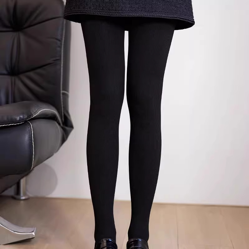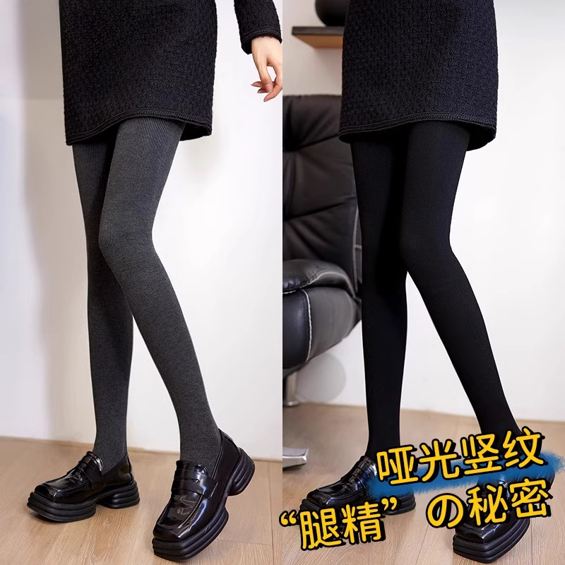 灰色连裤 光腿神器 袜子女加绒加厚保暖jk竖条纹秋冬日系黑色打底裤