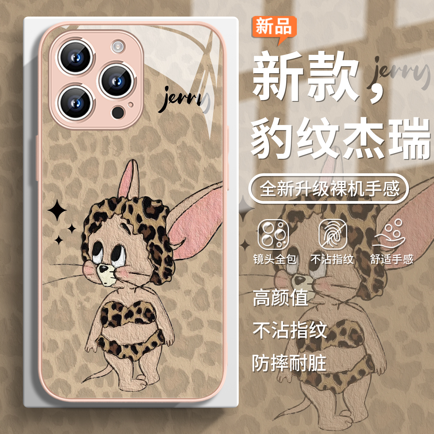 适用豹纹杰瑞iPhone16promax手机壳新款 11玻璃xsmax 创意12女款 苹果13猫和老鼠14plus卡通可爱15pro个性