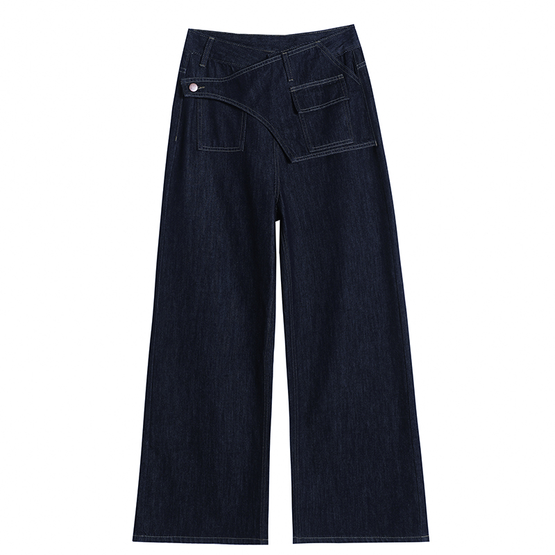 女25秋季 WANG红标双腰搭片牛仔裤 LEDIM 印花阔腿长裤 明星同款