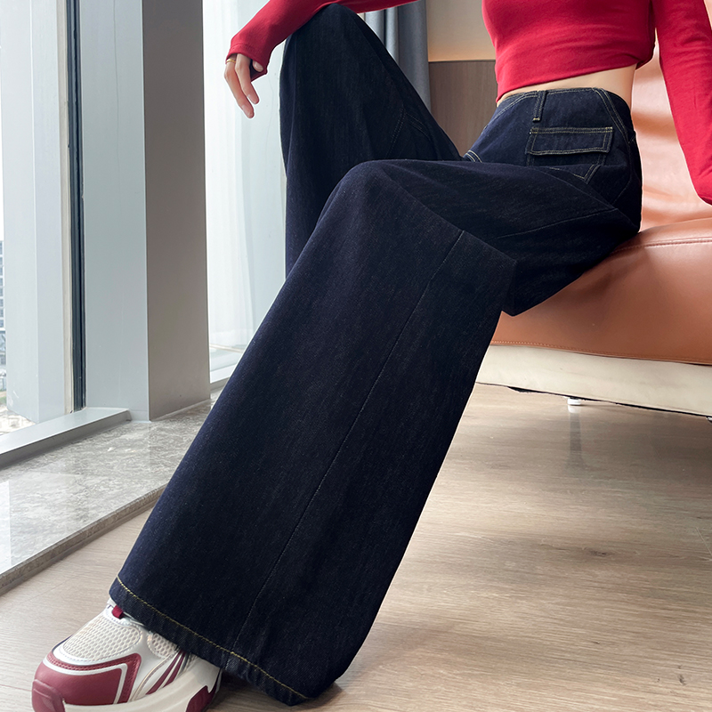加绒复古高腰小个子直筒长裤 新款 子 女秋冬大码 遮肉封神阔腿牛仔裤