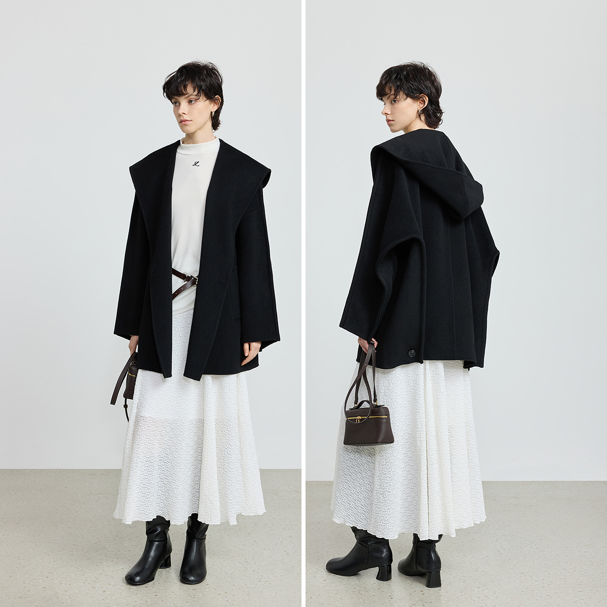 BXV斗篷双面羊绒大衣女披风2025春秋季 小个子澳毛英伦羊毛呢外套