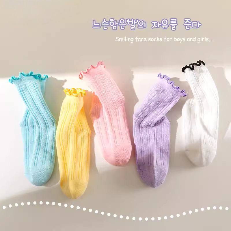 中筒童袜木耳边简约舒适亲肤棉质韩系纯色百搭小众春秋多巴胺色系