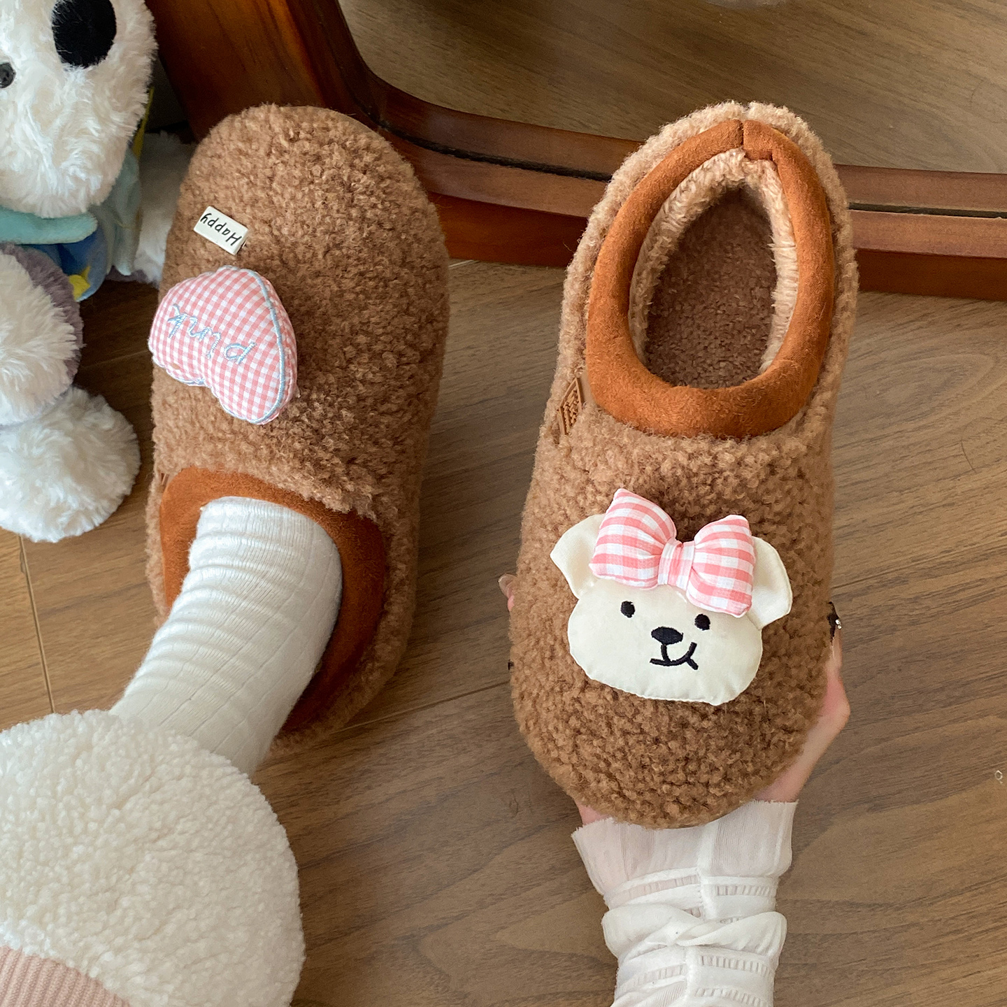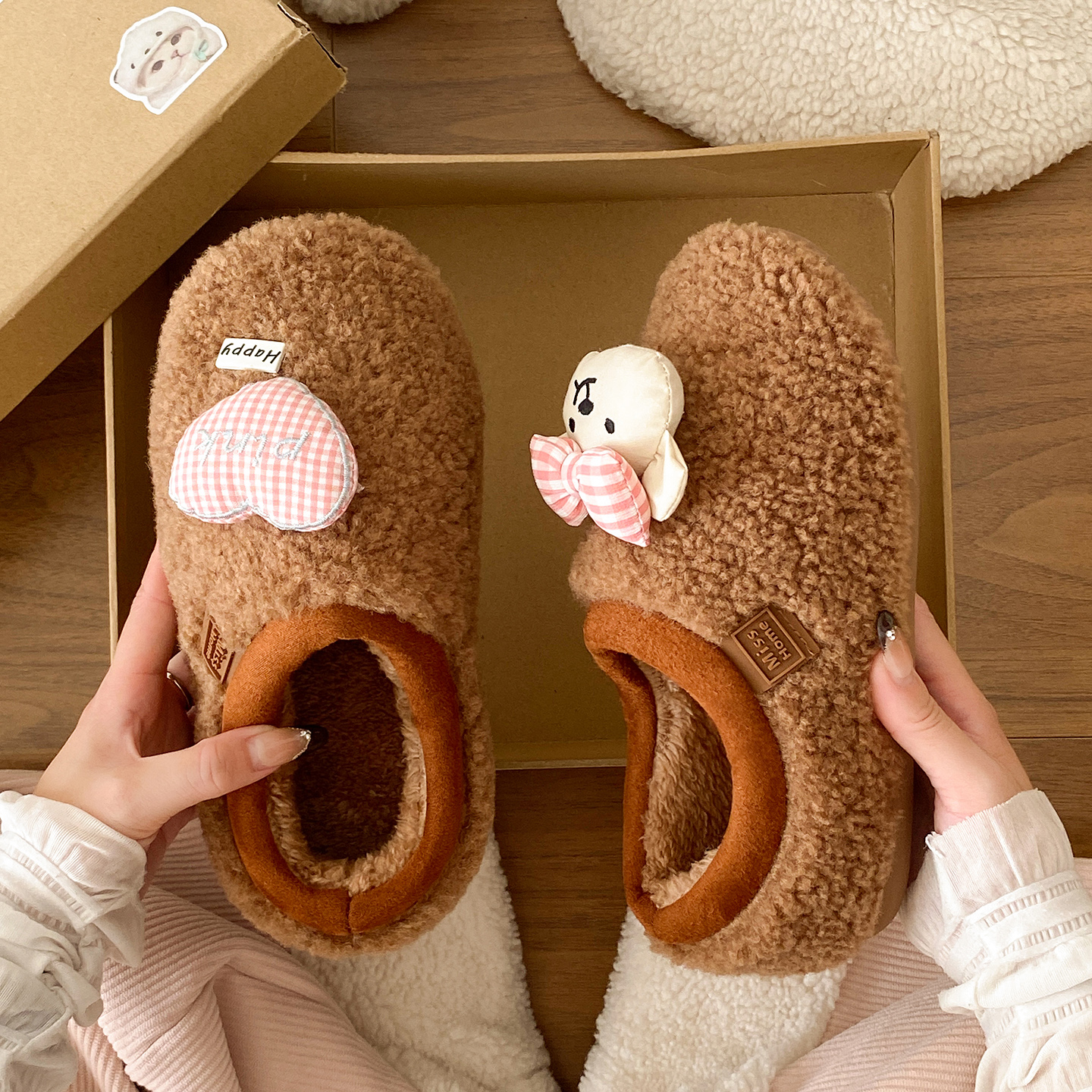 居家必备保暖防滑棉拖鞋 2025秋冬季 百搭粉色爱心小狗女士棉鞋 时尚