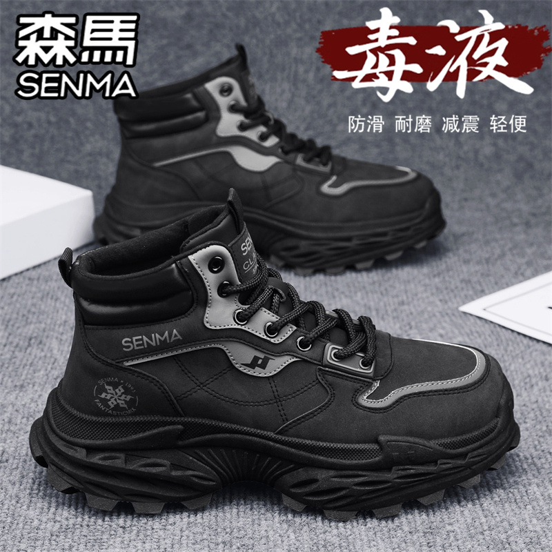 户外登山工装 高帮工地干活防水防滑劳保马丁靴男款 靴 秋季 森马男鞋