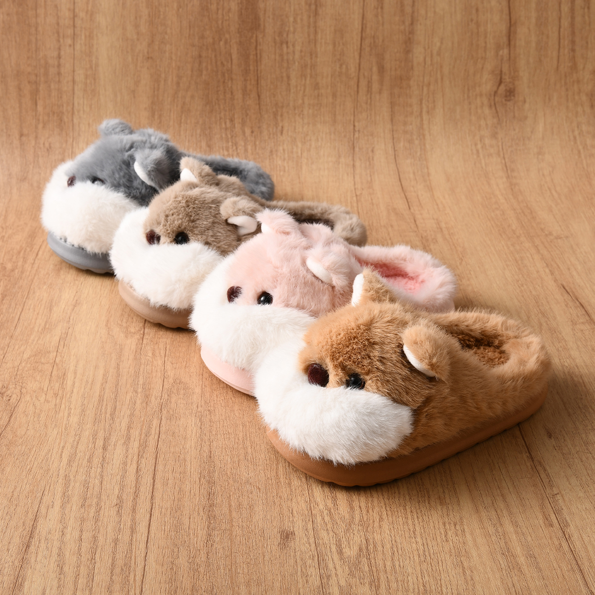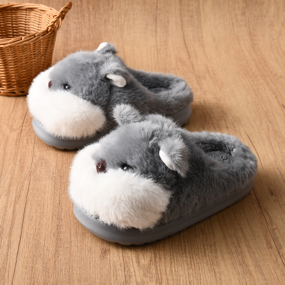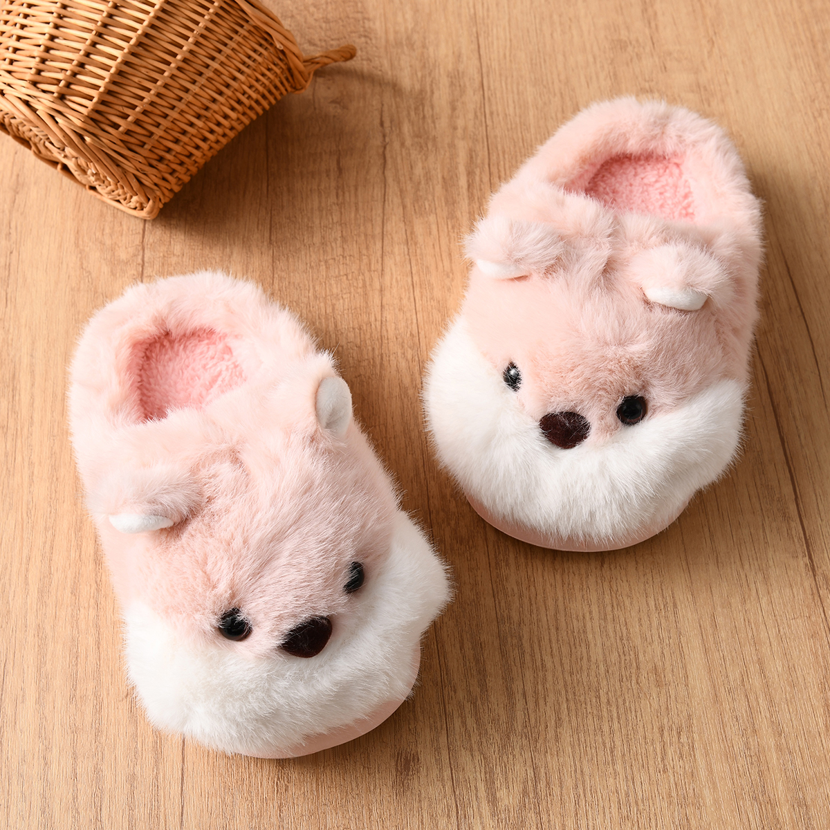 男女童防滑软底半拖室内家居女童棉拖鞋 加绒仓鼠儿童拖鞋 新款 冬季