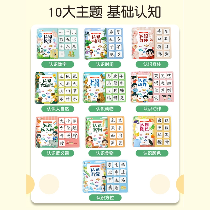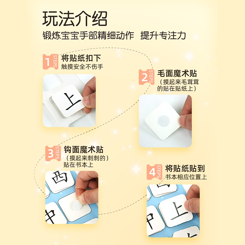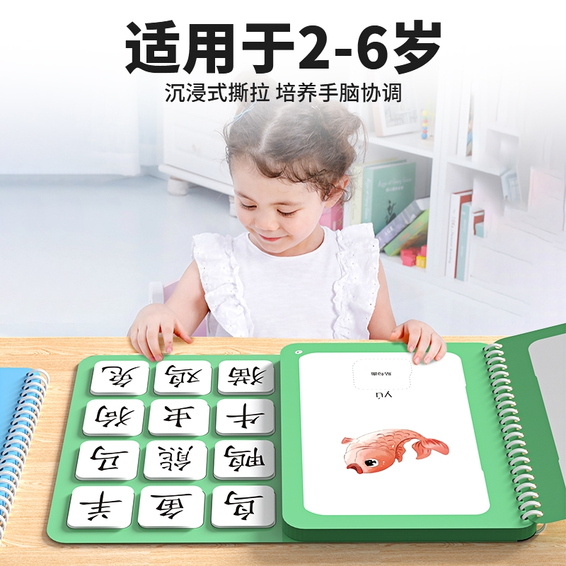 幼儿识字启蒙游戏书卡片魔术贴儿童象形看图识字书幼儿认字神器撕拉粘贴撕撕书益智玩具3 6岁宝宝识字早教安静书女孩男孩2025新款