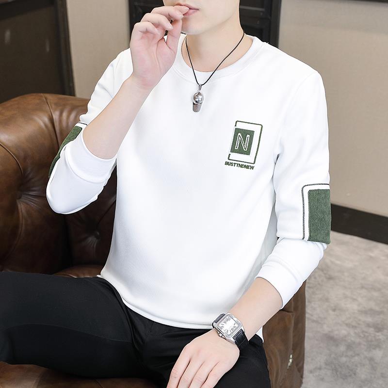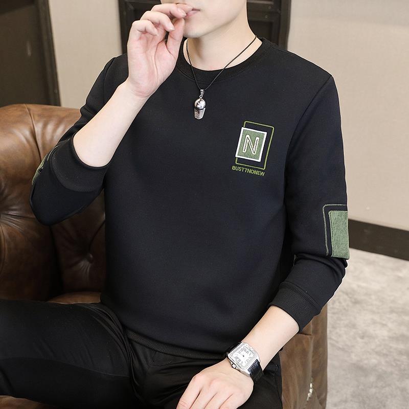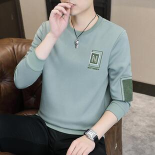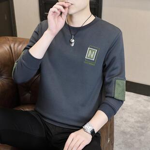 t恤圆领字母款 长袖 卫衣休闲加厚加绒内衣上衣1015e 男士 2025新款