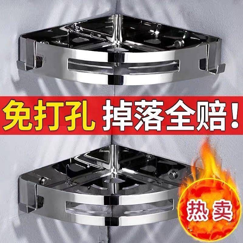 浴室三角置物架免打孔304不锈钢小三角转角架洗手间厨房收纳壁挂