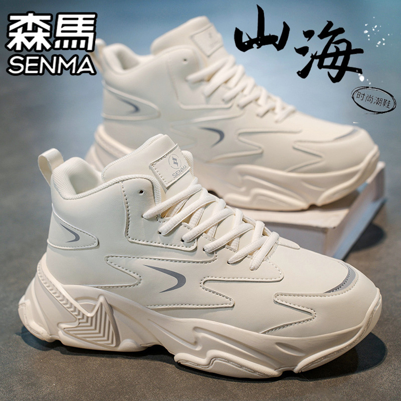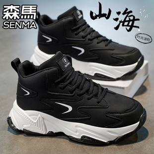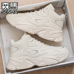 休闲皮面防水青少年跑步运动篮球增高小白老爹鞋 森马高帮男鞋 秋季