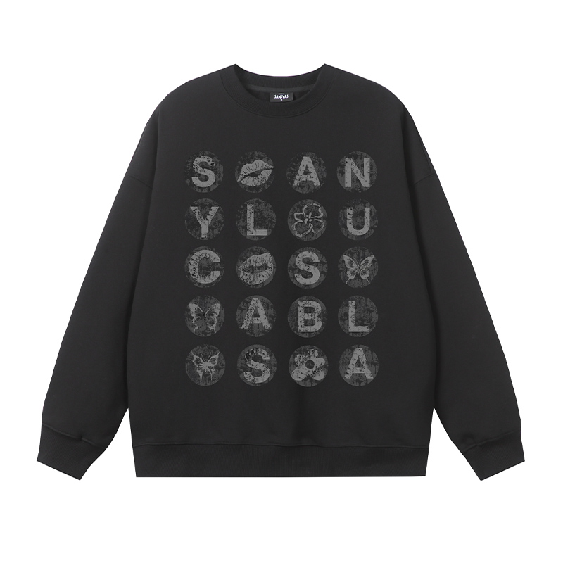 套头卫衣 简约字母印花宽松秋冬情侣款 木村三社SANSYAS 美式