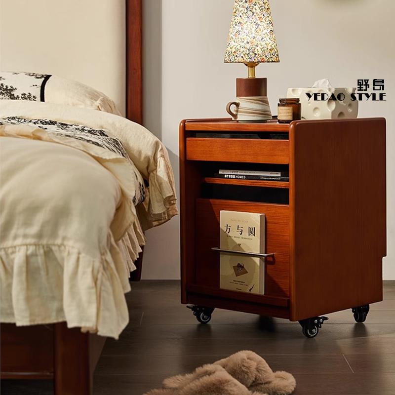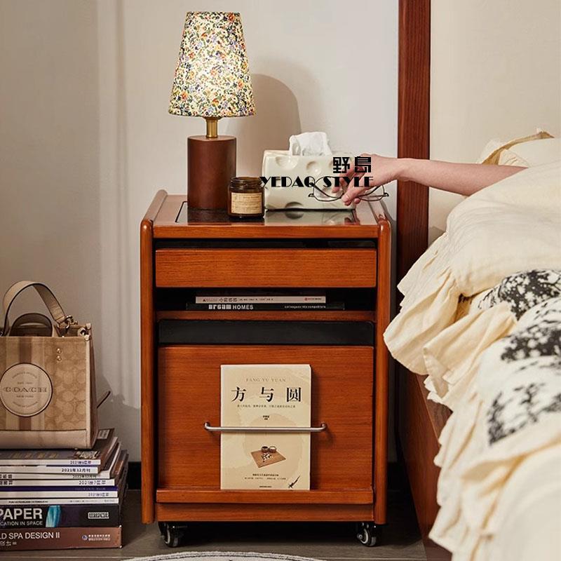 实木床头柜子2025新款 卧室家用床边柜中古风床头收纳柜简易储物柜