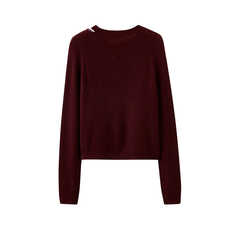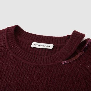 新款 水云间女装 上衣2025秋季 气质套头针织衫 圆领镂空设计感时尚