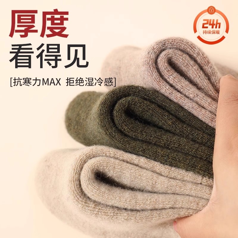 东北超厚保暖袜子男秋冬加绒仿羊毛中筒袜长袜睡眠地板袜零下发热