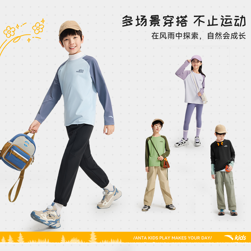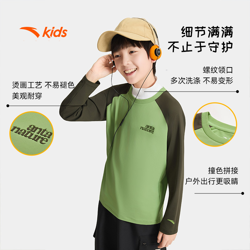 上新舒适亲肤中大童圆领长袖 2025新款 衫 安踏儿童男女童针织长袖