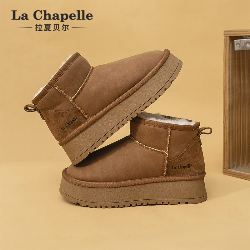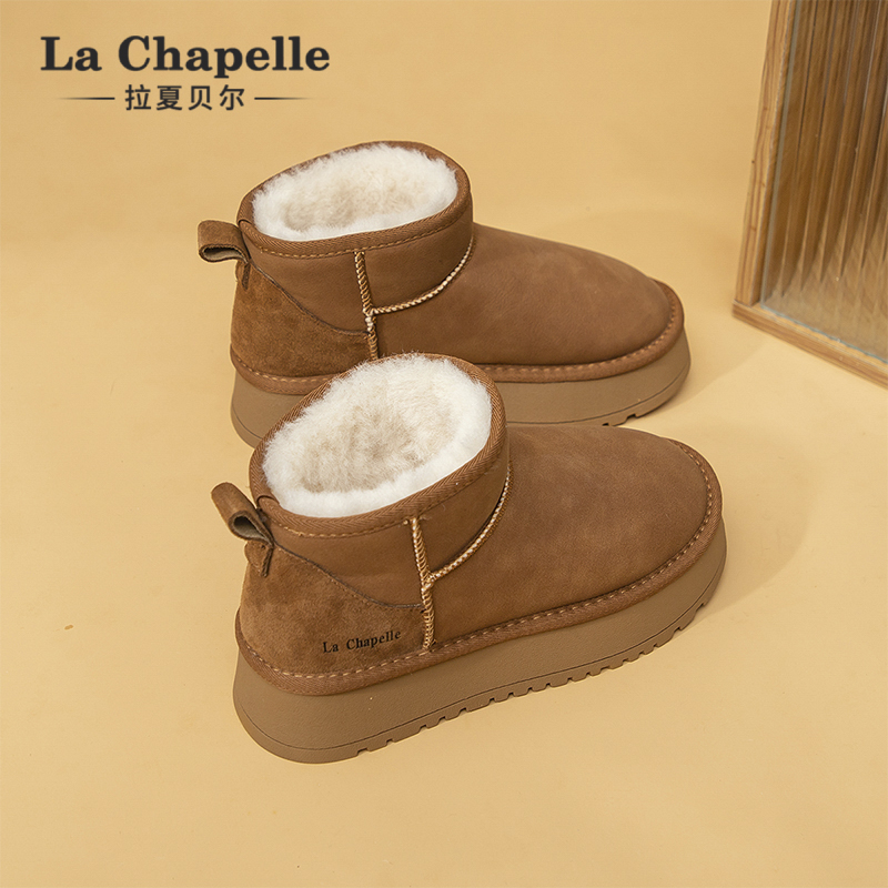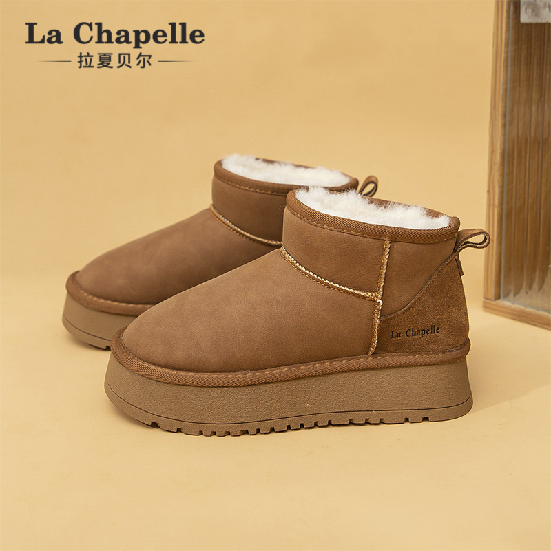 皮毛一体短筒加绒加厚保暖棉鞋 拉夏贝尔厚底雪地靴女2025新款 冬季