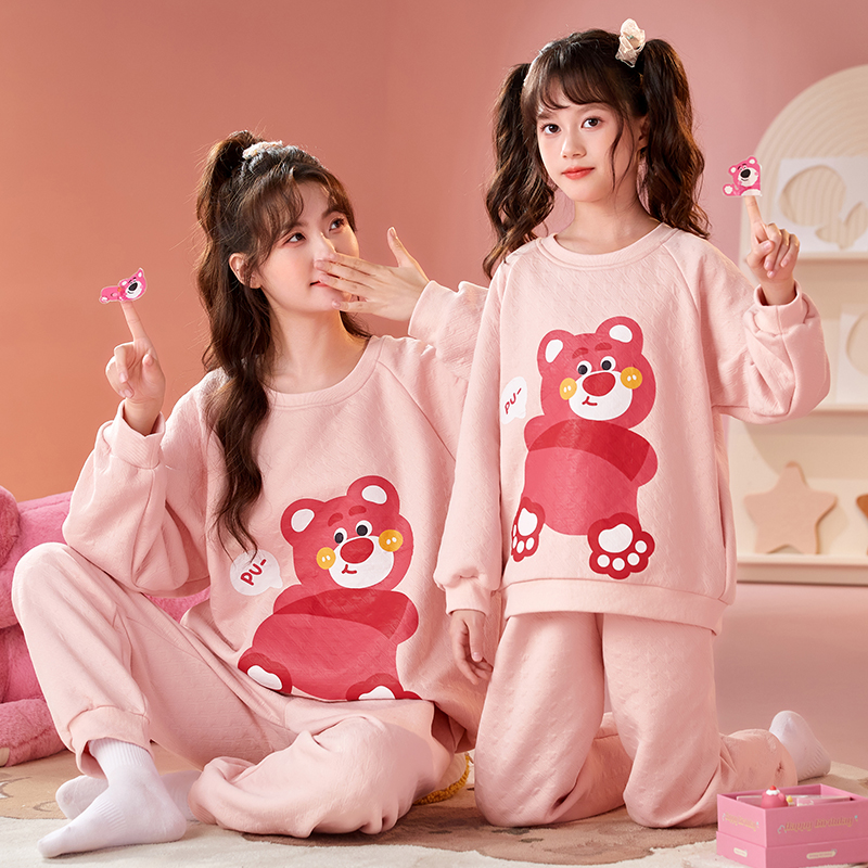 加大码 套装 家居服春秋 秋冬季 芬腾女士睡衣空气棉夹层纯棉加厚长袖