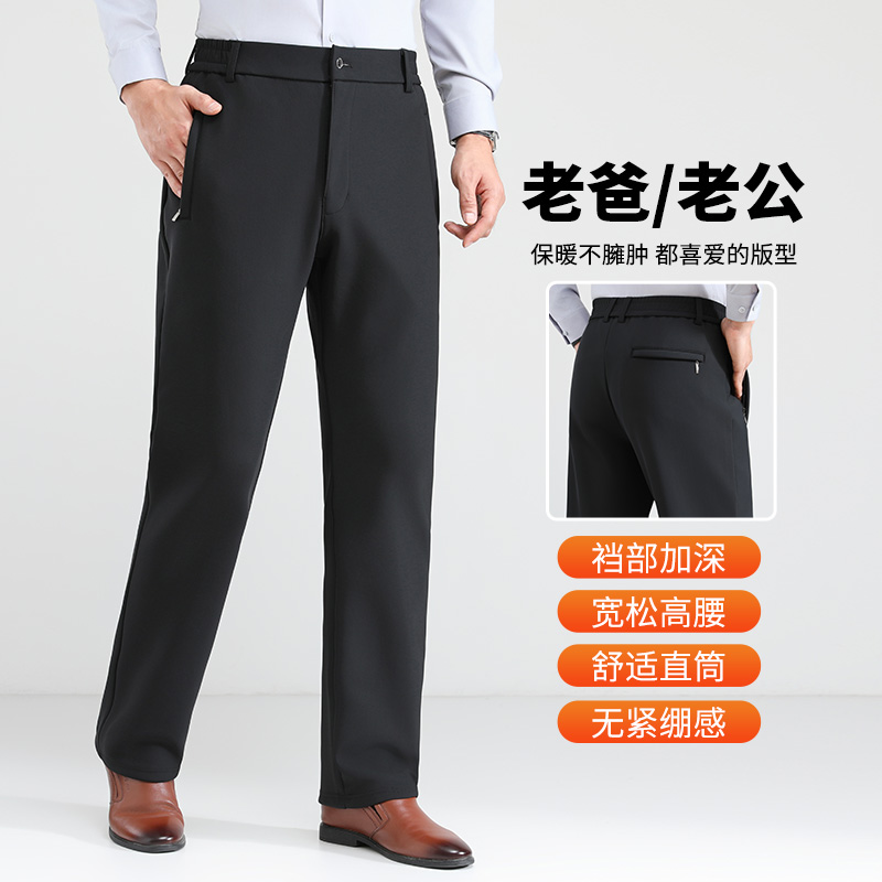 休闲裤 子弹力春秋直筒宽松西裤 冬季 爸爸裤 高腰保暖裤 加绒加厚男士