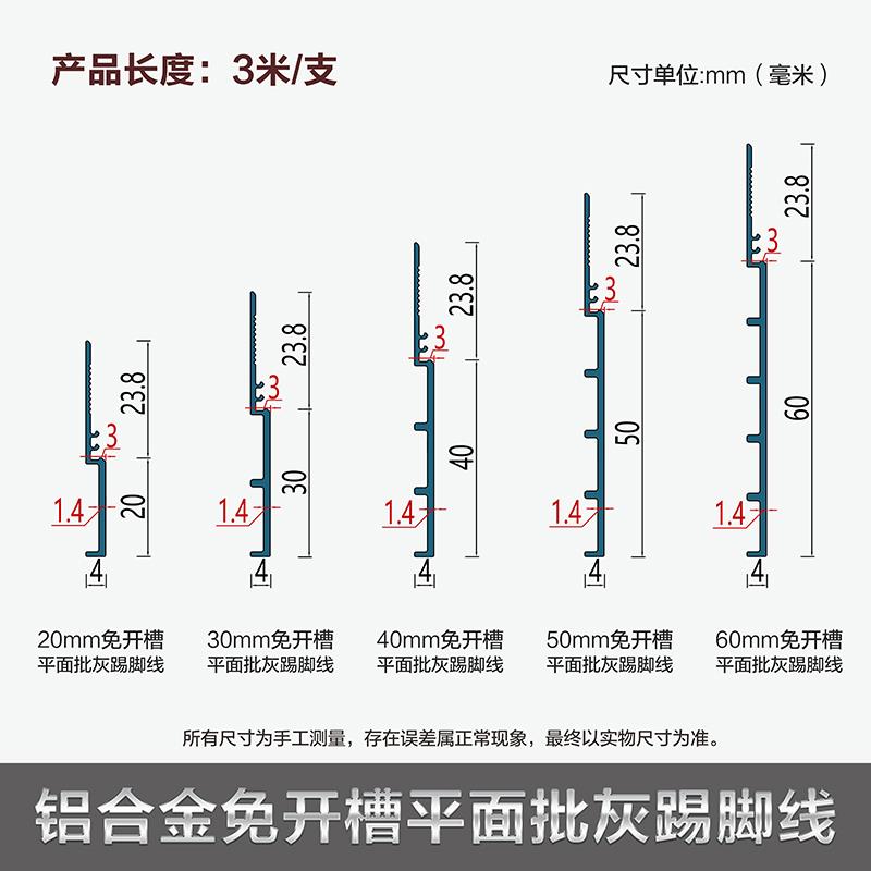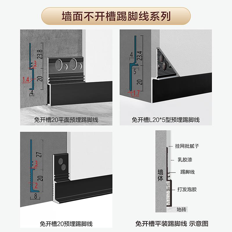 免开槽平面踢脚线批灰嵌入式 隐形金属铝合金贴脚线 隐藏地脚线暗装