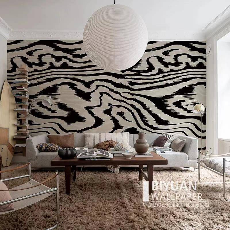 定制北欧抽象条纹客厅沙发电视背景墙壁纸卧室高级感墙纸装 饰墙布