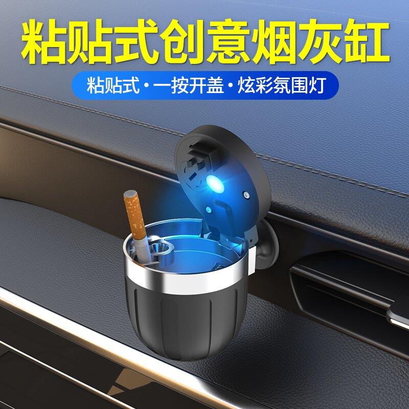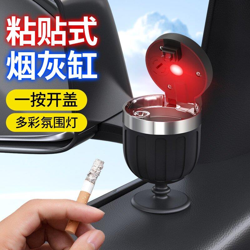 车载烟灰缸门边粘贴式 烟灰缸夜光男 可拆卸汽车用烟缸多功能悬挂式