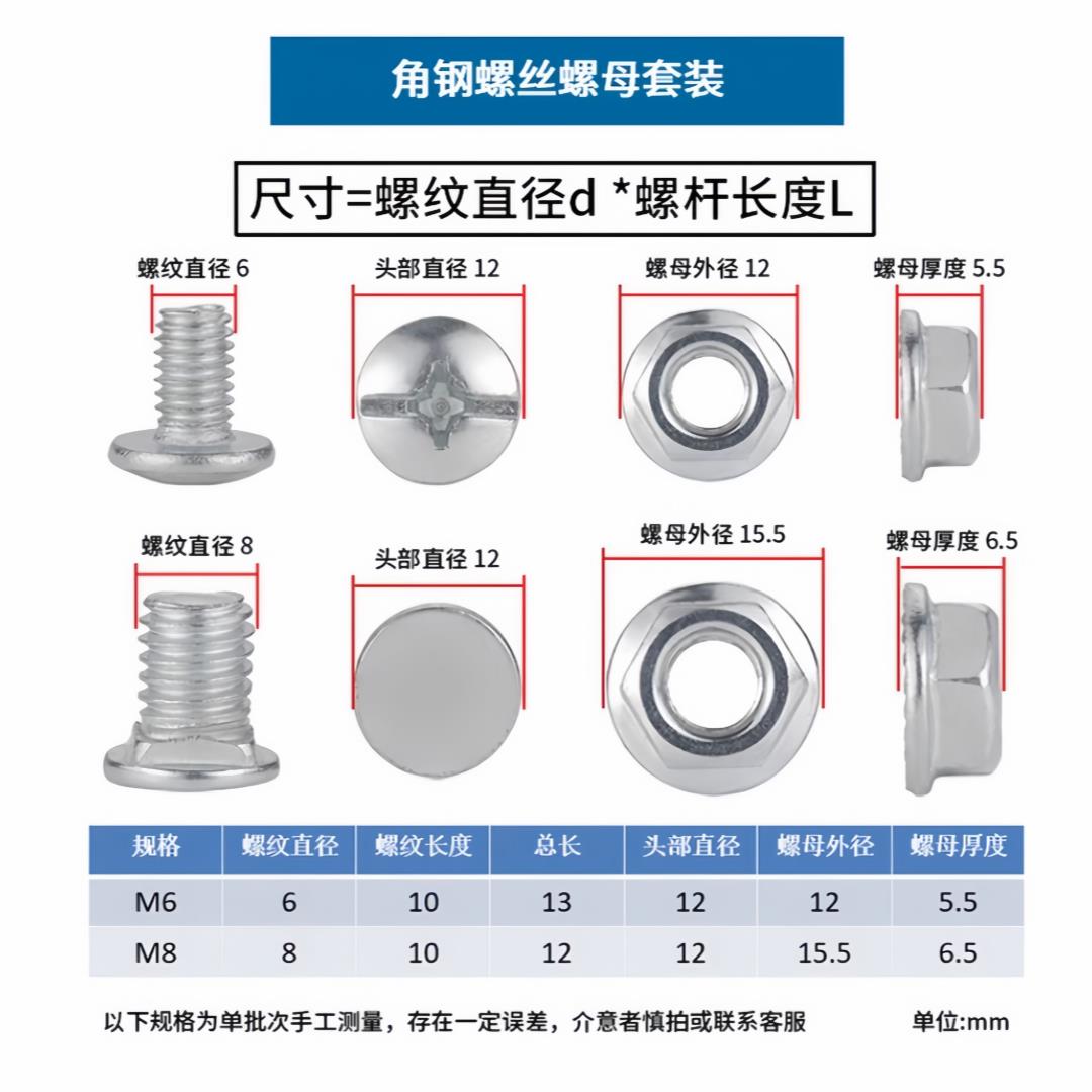 万能角钢货架螺丝冲孔角铁链接加厚三角片十字大扁头方颈马车螺钉