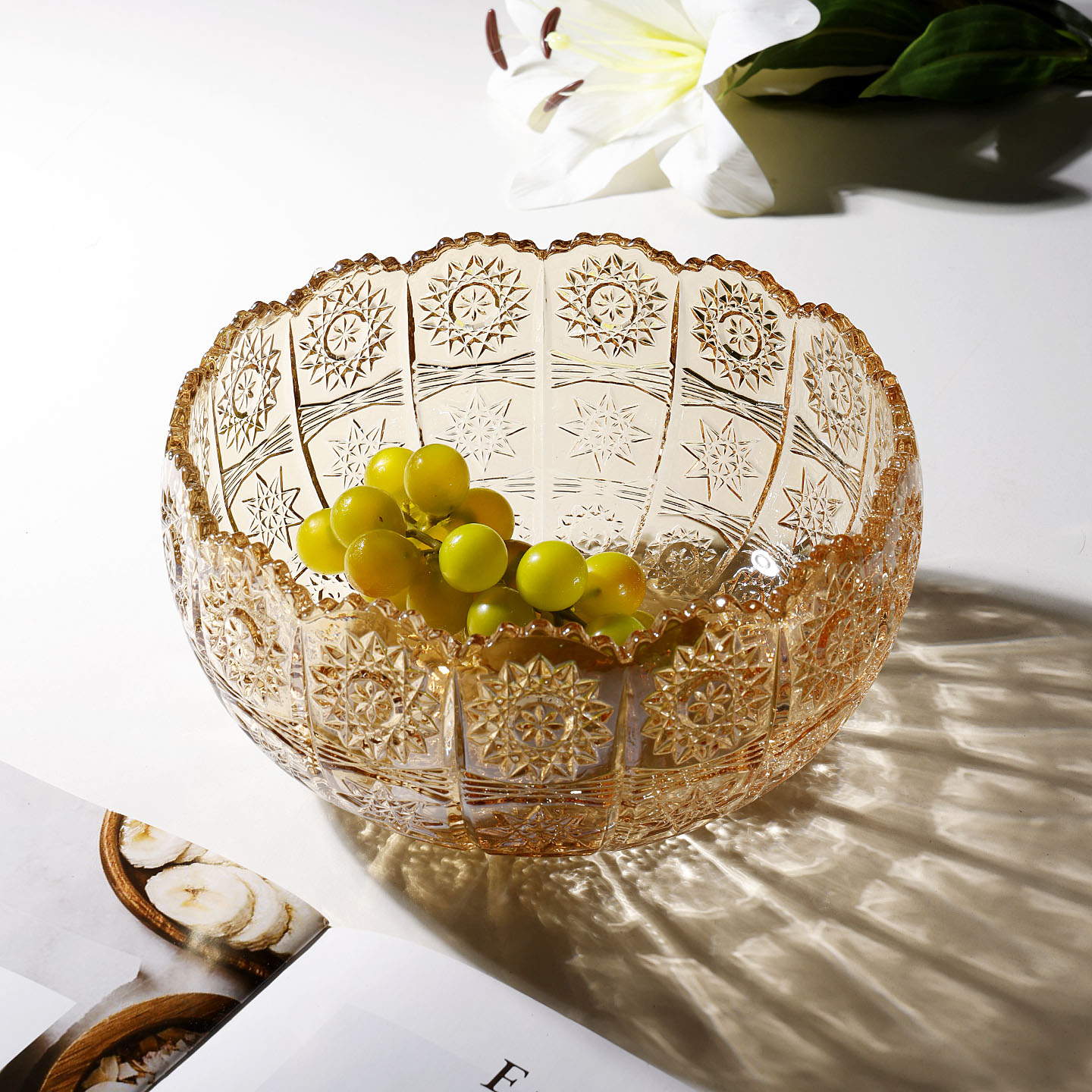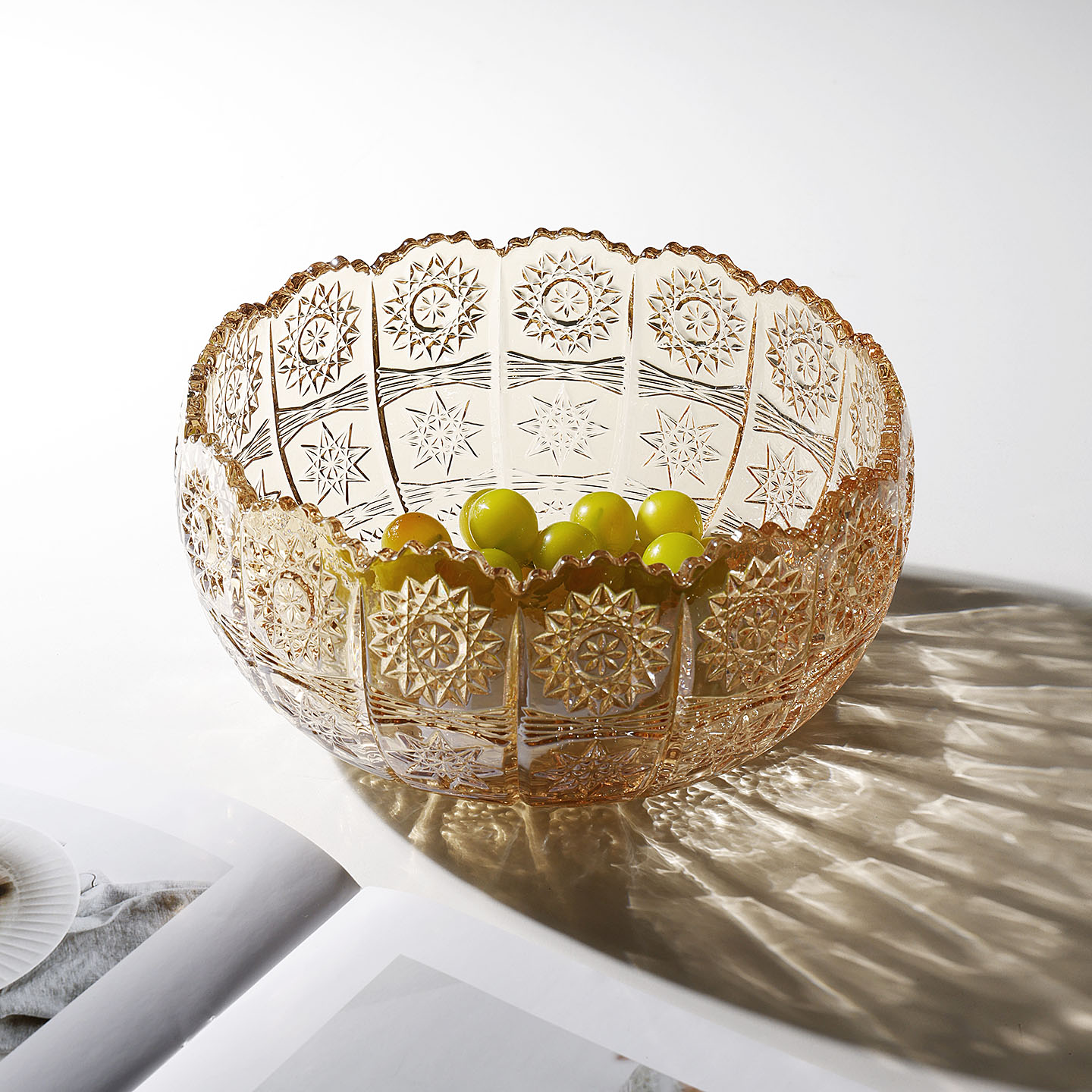 浮雕太阳花琥珀玻璃水果盘轻奢客厅茶几零食果斗精致糖果碗干果盘