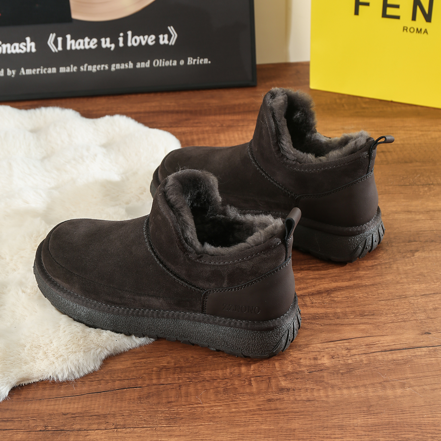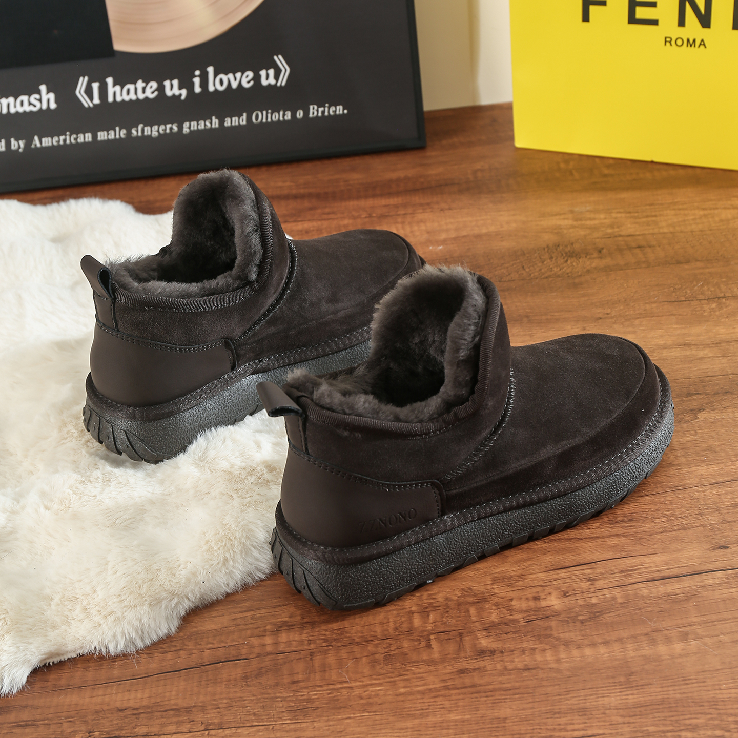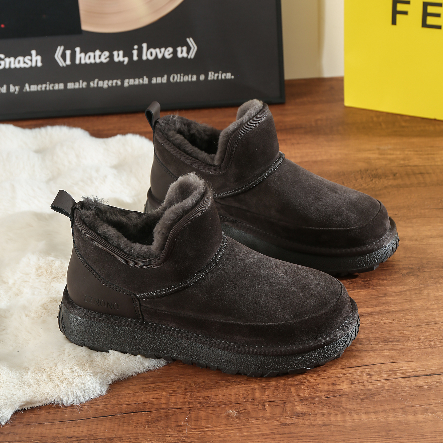 棉鞋 雪地靴男皮毛一体羊毛靴加厚保暖短筒男款 2025年冬季 防滑男鞋
