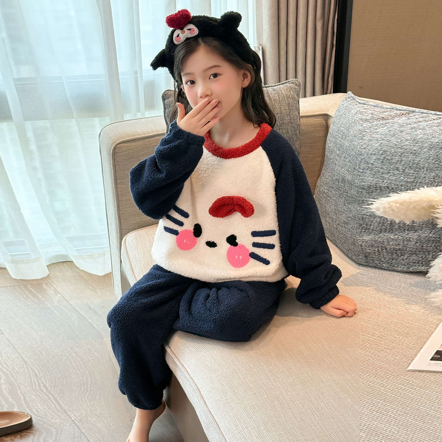半边绒睡衣女秋冬保暖可爱卡通家居服套装 Gukoo 果壳新款