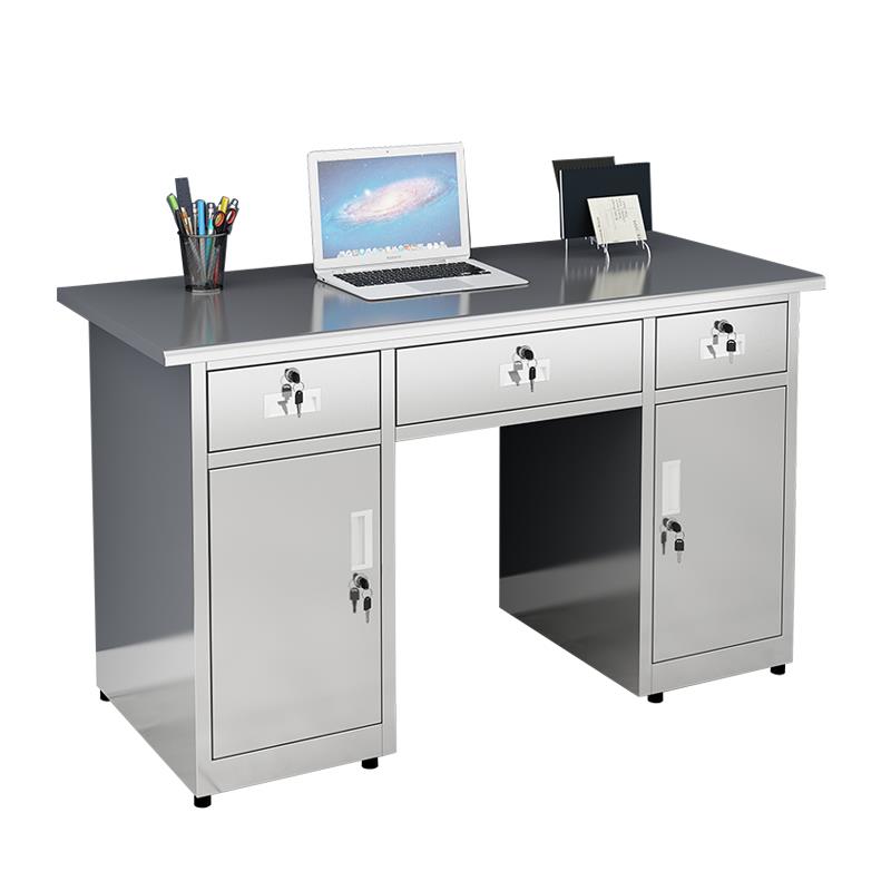 304不锈钢办公桌电脑台式 桌带抽屉收银台长方形工作台写字桌带锁