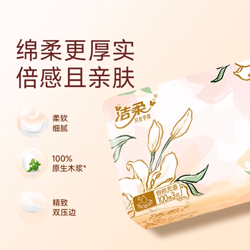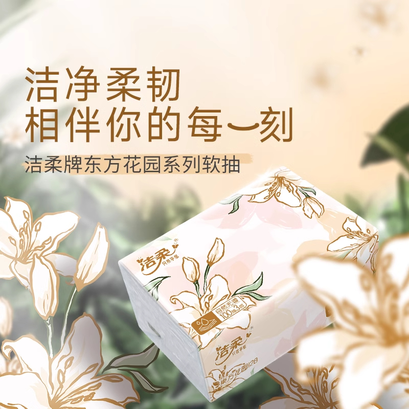 洁柔繁花抽纸家用纸抽亲肤抽纸家庭实惠装 纸巾 一次性纸巾抽取式