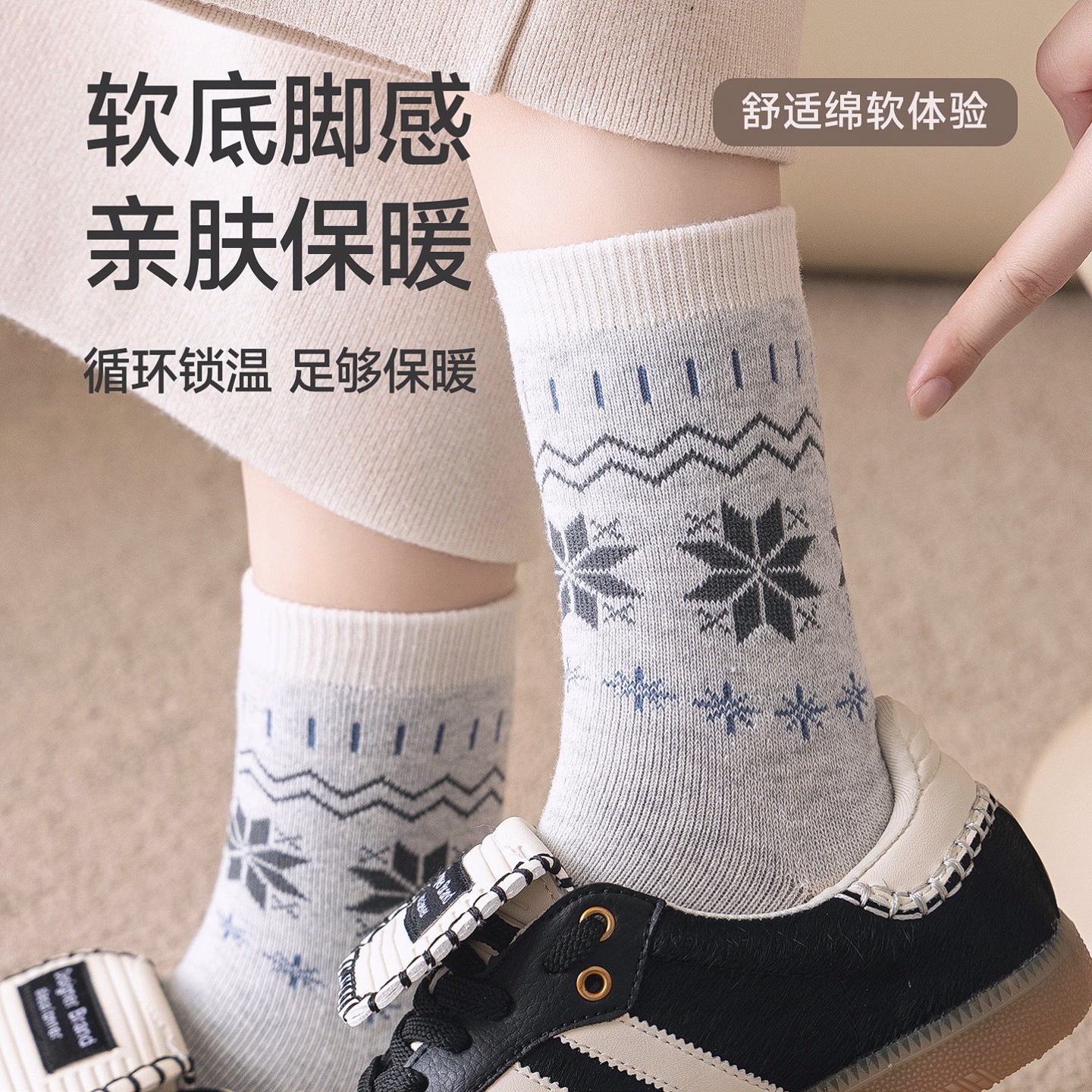 秋冬季 潮流外穿中筒袜女超火袜子 保暖毛圈加厚费尔岛ins风韩式