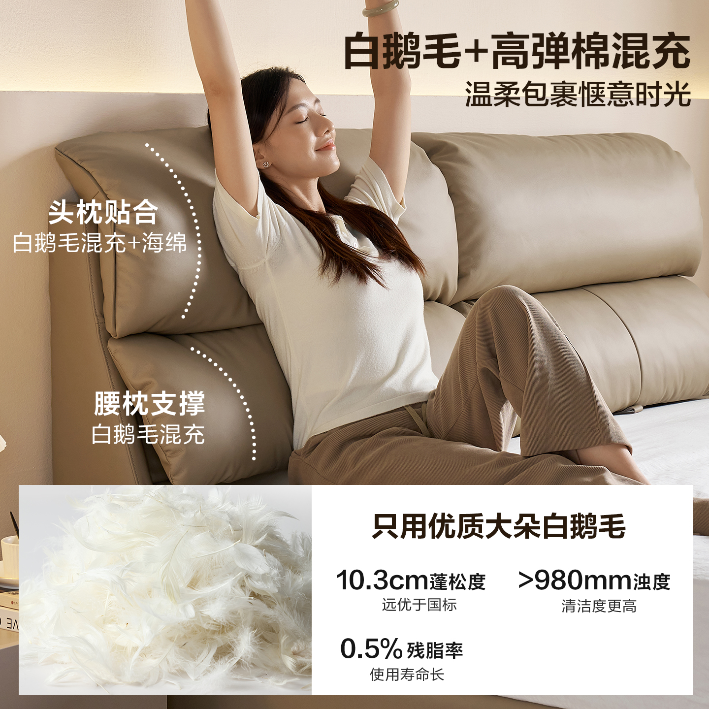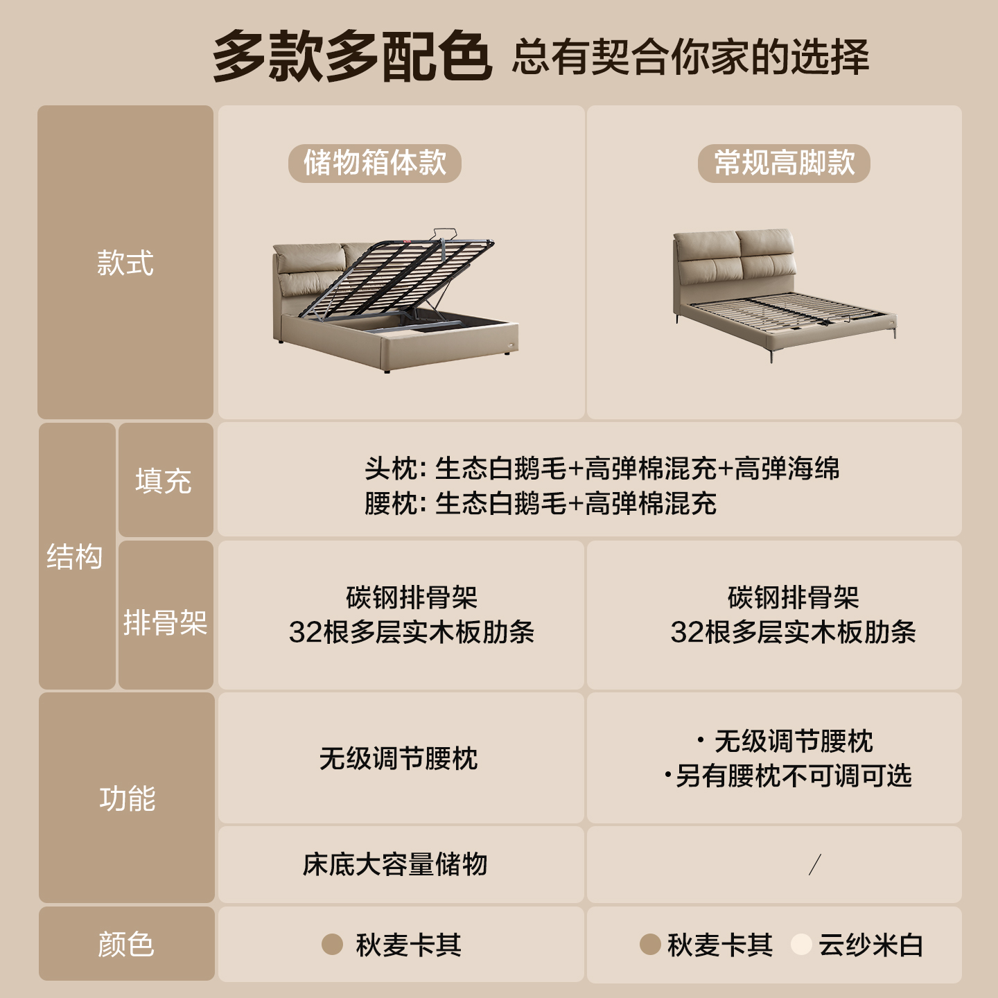 慕思皮床主卧大床现代简约高箱床真皮储物床轻奢床架皮艺床高箱床