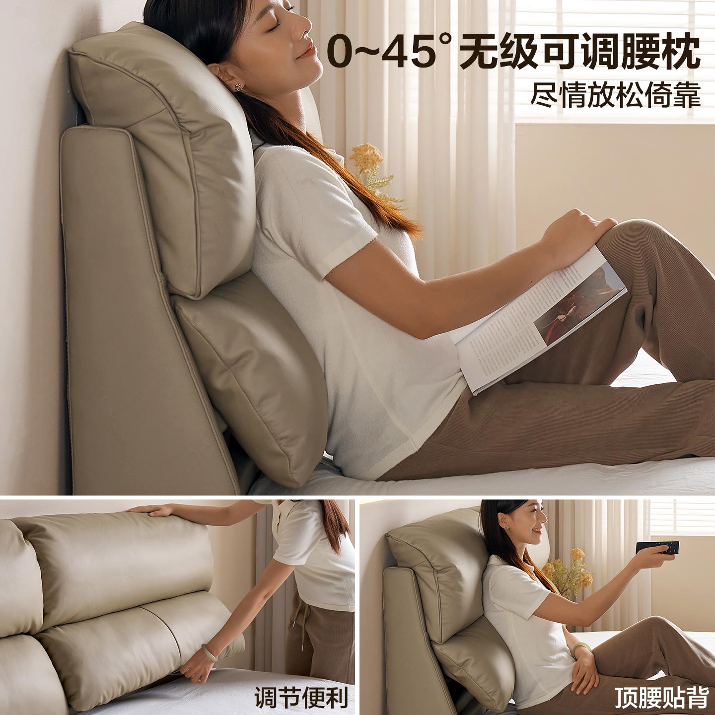 法莎蒂真皮双人床意式 现代极简卧室大靠包婚1.8米1.5米悬浮皮艺床