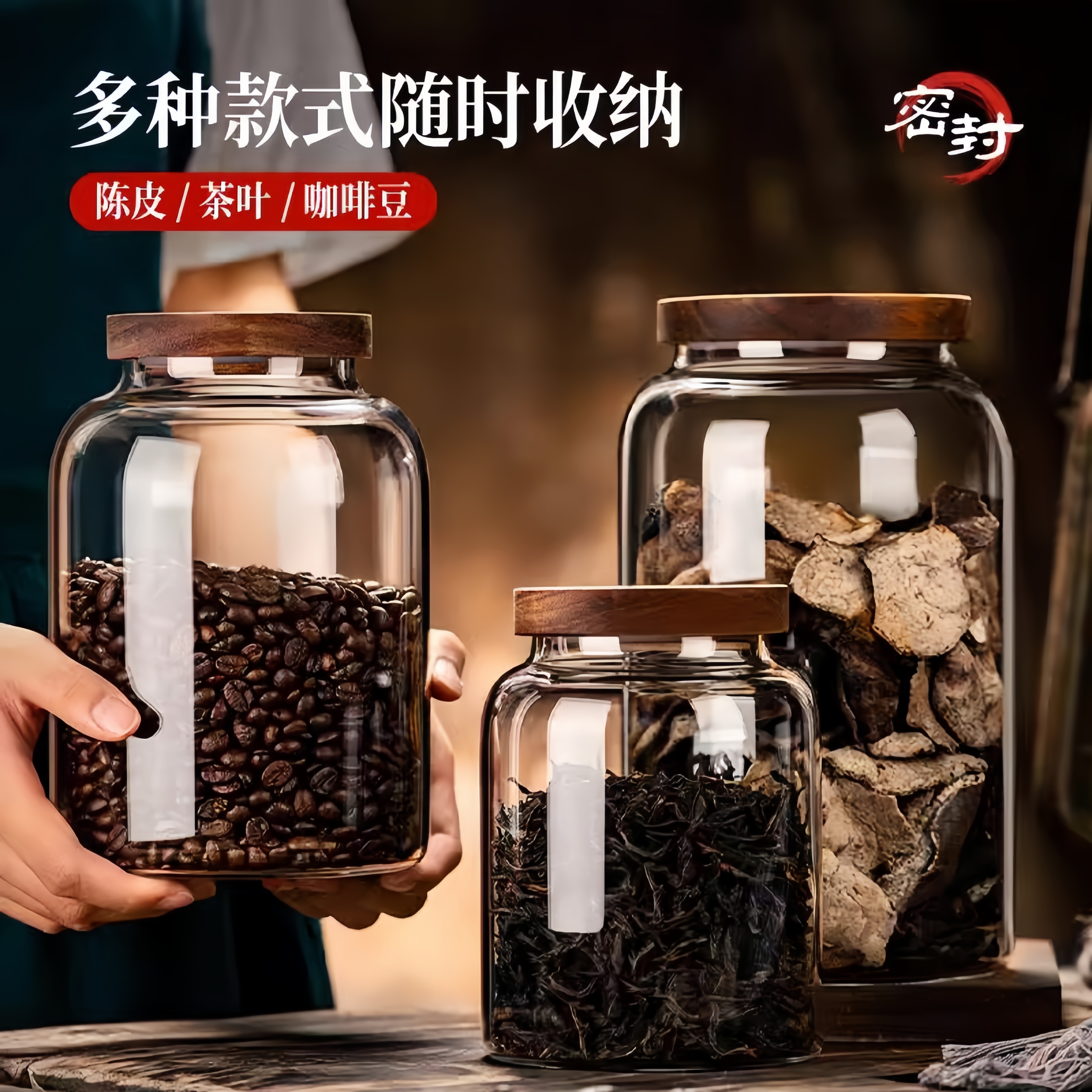 咖啡豆保存罐食品级玻璃密封木盖咖啡储存罐专用收纳茶叶储豆养豆