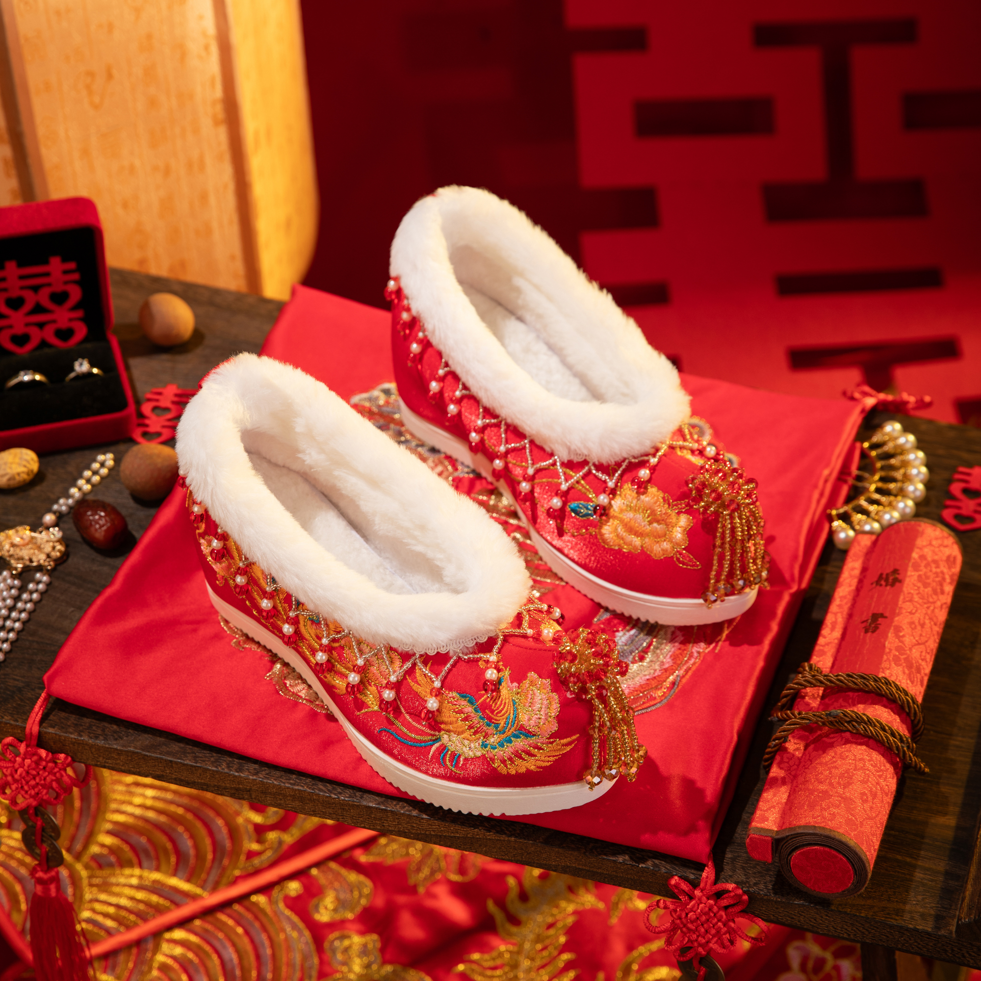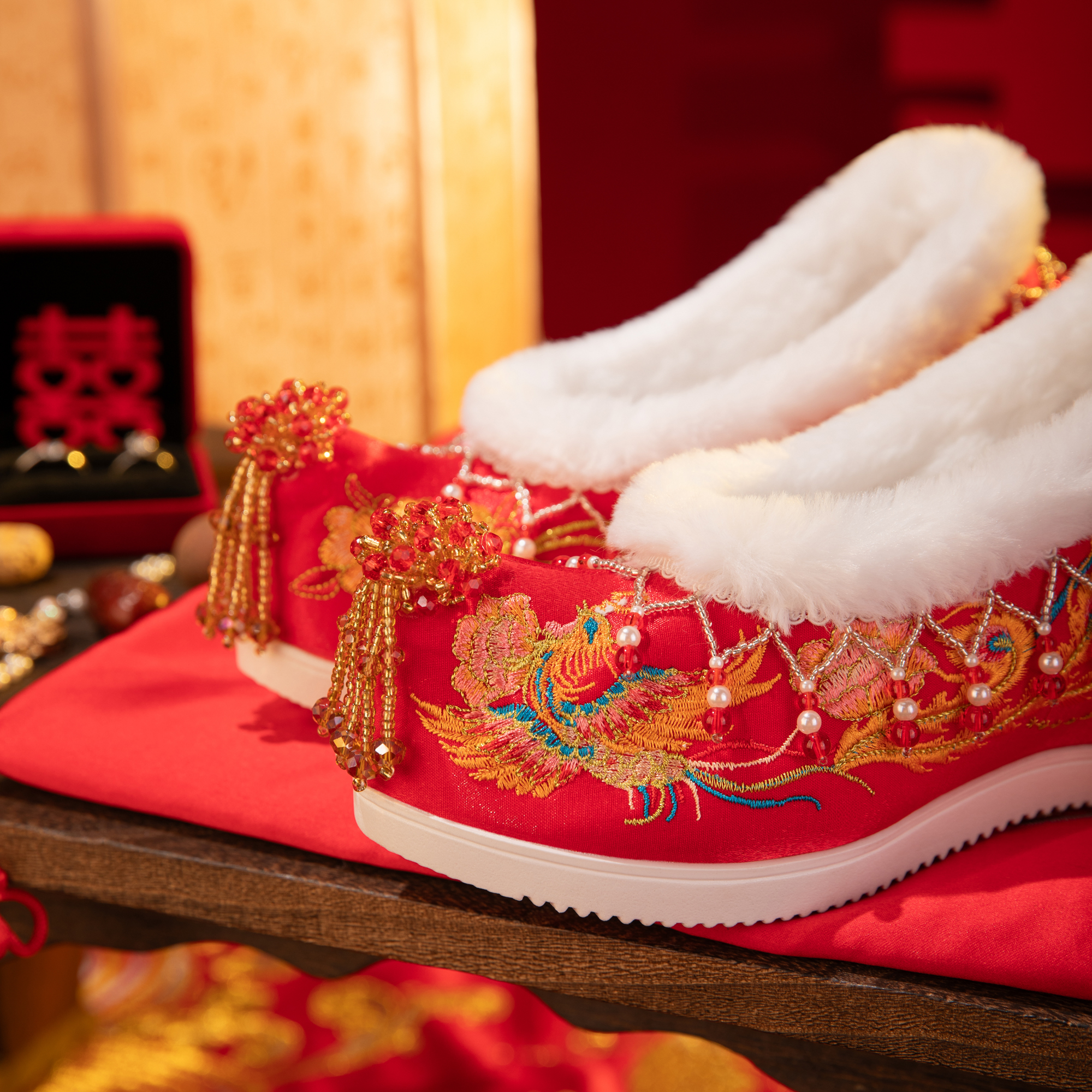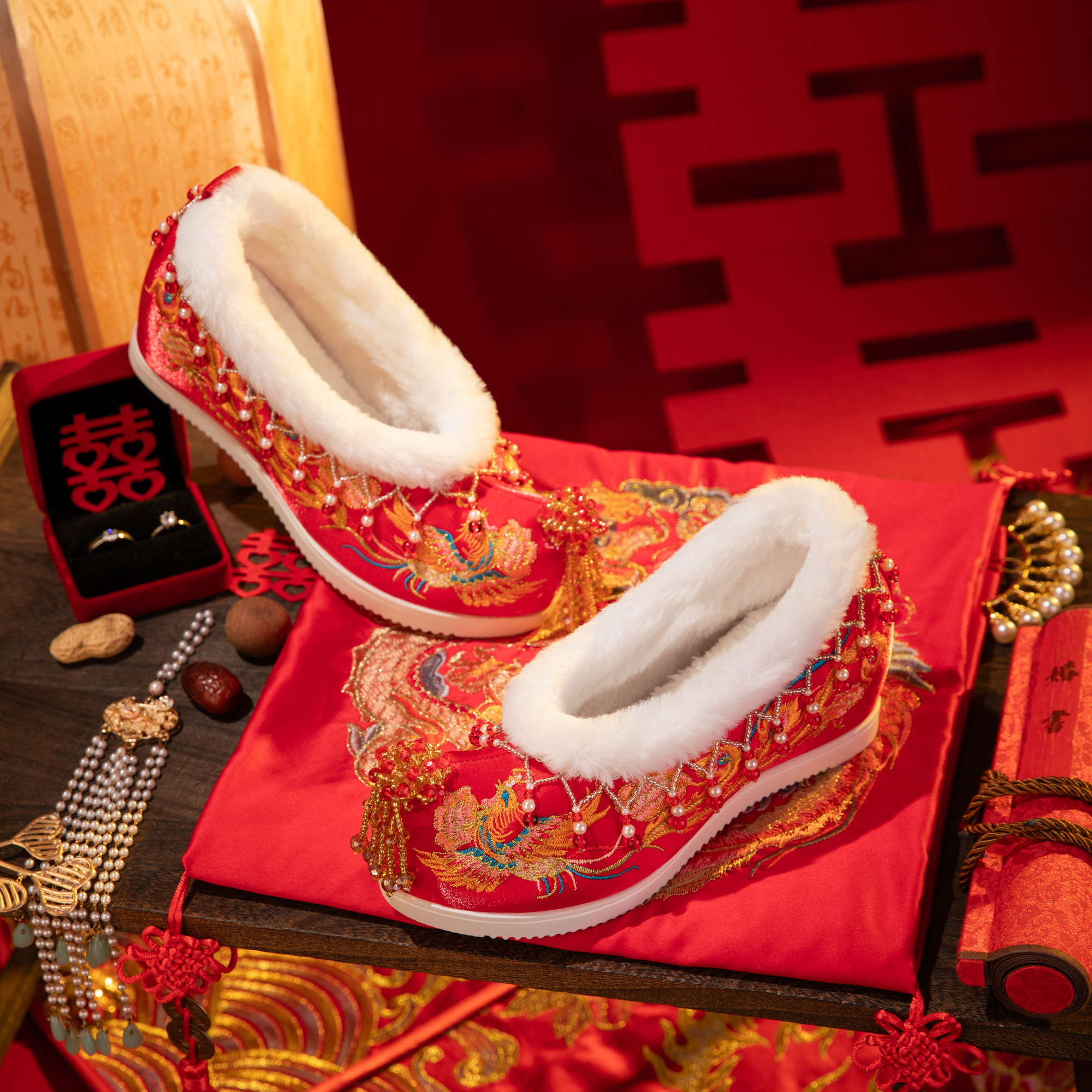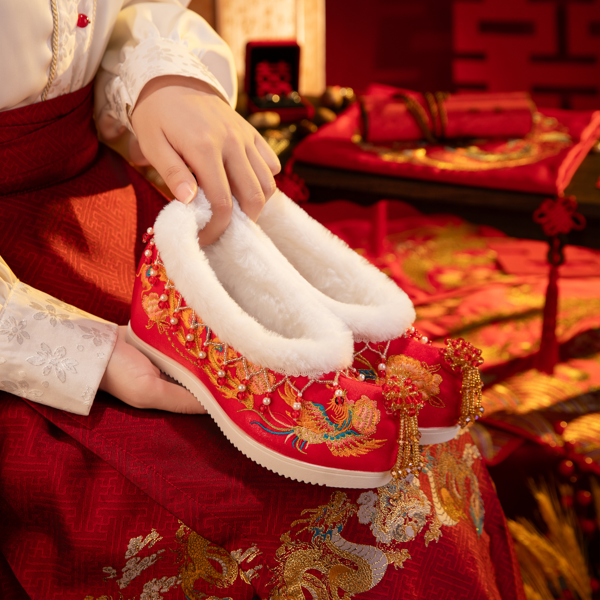婚礼汉服鞋 红色秀禾婚鞋 增高凤凰流苏新娘结婚中式 2025新款 女冬季