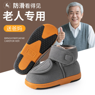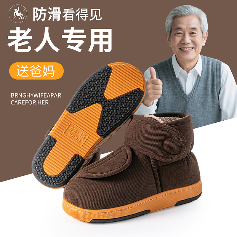 高帮包跟棉拖鞋 男女老人冬加绒保暖家用牛筋厚底防滑中年外穿棉鞋