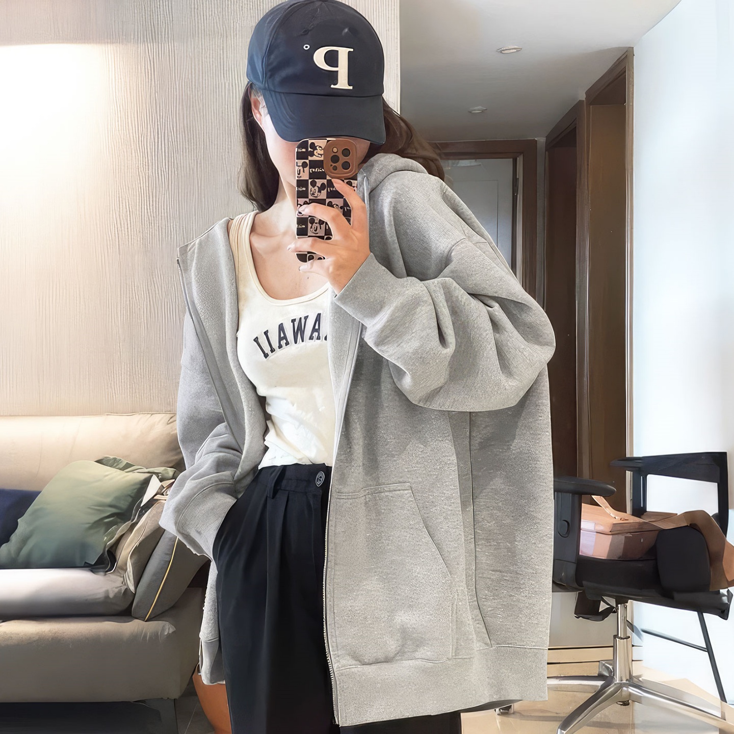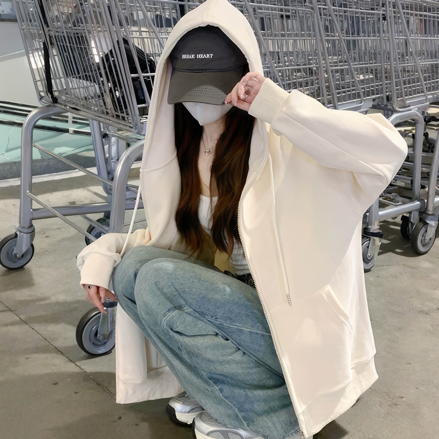 慵懒风开衫 秋冬季 拉链加厚上衣 爆款 藏蓝色外套连帽卫衣女2025新款